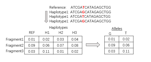 大家好,在此篇中和大家分享一下目前已上市FDA肿瘤大panel产品的体细胞突变检测算法。 一、前言 2022年9月初,国家卫生健康委临床检验中心(NCCL)发布了2022年《全国实体肿瘤高通量测序(大 Panel)肿瘤突变负荷检测室间质量评价预研结果报告》。本次共计收到62家实验室结果,基于评分方法,合格实验室共计49家。 肿瘤突变负荷(tumor mutational burden,TMB)一般指特定基因组区域内每兆碱基对(Mb)体细胞非同义突变的个数,因此检测TMB的准确性是直接和检测体细胞突变SNV的准确性相关。本次参评实验室使用的体细胞小突变检测工具如下图所示,主要分为使用自建工具或者是第三方软件。 二、FDA产品检测体细胞突变检测工具 FDA的产品的检测方法也分为使用自建方法和第三方软件,例如FoundationOne CDx使用自建的检测工具,MSK-IMPACT使用第三方软件。以下主要针对这2家的算法进行讲解。 FoundationOne CDx 为Foundation Medicine, Inc.的在2017年获得 FDA批准(FDA-approved,三类)的肿瘤大panel,以下简称F1CDx,F1CDx共包含324基因,全长2.2Mb,CDS区约0.8Mb。 2.1.1检测范围 碱基替换(substitutions),插入和缺失突变(InDels),拷贝数缺失(CNAs),融合突变(SV),微卫星不稳定(MSI)和TMB。 2.1.2检测工具 2.1.2.1碱基替换 碱基替换检测是使用贝叶斯方法进行的,该方法允许检测低突变等位基因频率 (MAF) 的新发体细胞突变,并通过结合组织特异性先验预期(prior expectation)提高对热点突变位点的检测灵敏度。将mapping quality <25或 base calls with quality ≤2的reads过滤掉。最终判断体细胞突变发生的标准为MAF ≥ 5%(热点为MAF ≥ 1%)。 具体算法公式如下所示: P(Mutation present| Read data “R”) = P(Frequency of mutation “F” > 0|R) = 1 – P(F = 0|R) P(F = 0) = 1 – prior expectation “p” of the mutation in cancer type P(R|F = i/n)的值使用每个候选突变位点观察到的等位基因count的多项分布去评估,使用观察到的error rates的经验值。如果P(“F” >0|R) > 99%时会作为候选的突变位点,最终当MAF ≥ 5% (MAF ≥ 1% at hotspots)时才报告为体细胞突变。在此之前,还需要使用Fisher’s test(P < 1e-6)去过滤strand bias,使用Kolmogorov–Smirnov test(P < 1e-6)去过滤read location bias ,此外如果在正常参考样本组中有2个或2个以上的正常样本中出现此位点突变的话,也会进行过滤。 2.1.2.2插入和缺失突变 为了检测插入缺失,使用 de-Bruijn 方法在每个目标外显子中进行从头局部组装(de novo local assembly)。涉及到的8个关键步骤如下所示: 1)收集至少一条read比对到目标区域的所有read-pairs。 2)将每条read分解成k-mers的小片段,并重新组装,由于变异位点的存在,组装最终会得到一个带有多个枝节点组装图,通过遍历整个组装图的所有可以通行的路径,可以得到多条长序列,这些长序列称之为haplotypes. 3)通过无间隙比对(ungapped alignment),将所有reads与每个候选haplotypes进行比较,并将每个read的read vote分配给具有最佳匹配的候选haplotype。候选haplotypes之间的关系通过拆分read vote来解决,由已经支持每个haplotype的reads数量加权。重复此过程,直到选择“获胜”haplotype。 4)将候选haplotype与参考基因组进行比对以报告突变位点。 候选插入缺失的过滤与碱基替换类似,根据经验针对repeats区提高等位基因频率的阈值,此外针对repeats相邻区域的质量指标如同GATK 中实施的相邻序列质量指标:相邻碱基不匹配百分比 < 25%,平均相邻碱基质量 > 25,read mismatches的平均数量≤ 2。最终判断标准为MAF ≥ 5%(热点 MAF ≥ 3%)。 MSK-IMPACT 为Memorial Sloan-Kettering Cancer Center的获得 FDA批准的一款肿瘤大panel。 2.2.1 检测范围 碱基替换(substitutions),插入和缺失突变(InDels),微卫星不稳定(MSI)。 2.2.2检测工具 2.2.2.1 碱基替换 使用软件MuTect2 (version 1.1.4) 。 Mutect2算法如下所示: Mutect2在进行变异位点检测时的工作流程分为四大模块:Finding Active Regions(活跃区域鉴定),Assembling Haplotypes (基因序列局部重组),Somatic Genotyping和Filtering。 1) Finding Active Regions 活跃区域鉴定:遍历基因组数据,确定可能有变异位点的大致区域,称之为活跃区域(Active Regions),其他区域则是非活跃区域。如果没有感兴趣区间,就需要遍历全基因组进行活跃区间的鉴定,如果有感兴趣区间,则只需要在感兴趣区间内进行活跃区域鉴定。 2) Assembling Haplotypes 局部组装,通过建立de Bruijn-like graph 对于活跃区域下的所有reads进行局部重新组装,由于变异位点的存在,组装最终会得到一个带有多个枝节点组装图(graph)。同时根据reads序列的碱基质量信息以及每个位点变异的频率,还需要对图的各种枝节点进行部分修剪。通过遍历整个组装图的所有可以通行的路径,可以得到多条长序列,这些长序列称之为haplotypes. 3) Somatic Genotyping 对于每个活跃区域,统计该区域内的所有reads以及对区域内reads重新组装得到的haplotypes,利用Pair-HMM算法将每条read和每条haplotype分别对齐,计算两两序列之间匹配的相似度。由此可以得到一个相似度矩阵,矩阵记录每条read对应上每条Haplotype的匹配相似度(read-haplotype likelihoods)。 Mutect2将此矩阵再转换成fragment-haplotype 矩阵,通过对paired reads增加log-likelihoods即P(fragment|haplotype) = P(read 1|haplotype)P(read 2|haplotype),fragment即指的是一对paired-end reads之间的片段。对于每一个候选变异位点,将fragment-haplotype矩阵再转换成fragment-allele的矩阵,即选出覆盖该位点的fragment和haplotypes对应的相似度子矩阵如下图左侧所示。将每个F