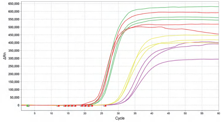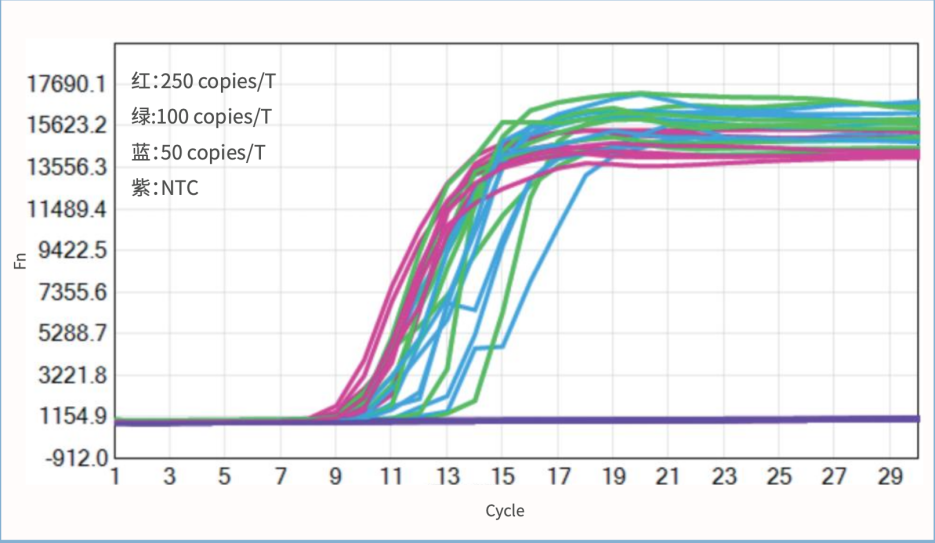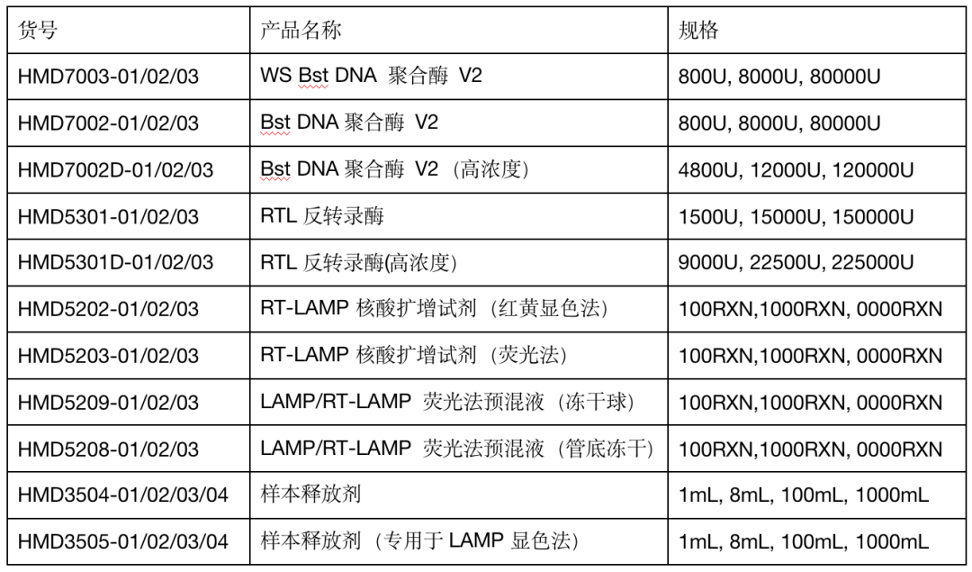 环介导等温扩增(LAMP)是一种用于检测靶标DNA和RNA的恒温扩增核酸检测技术,是分子POCT领域应用最广泛的技术。LAMP扩增体系可采用多种检测方法判断结果,完美适配于分子POCT多种场景需求对仪器及试剂产品设计的要求。 瀚海新酶四年多以来,在LAMP体系优化、原料酶定向改造上持续优化,方便客户快速采用LAMP体系建立产品平台,为客户提供BST聚合酶及反转录酶RTL、预混液、冻干微球以及样本释放剂等核心原料,协助客户打造高品质分子POCT快速检测产品。 1 LAMP关键酶原料:BST DNA 聚合酶 V2 聚合速度快: 聚合速度是评价BST DNA聚合酶的一项关键指标。WS Bst DNA 聚合酶 V2(HMD7003)在使用SARS-COV-2 N基因的情况下,表现与竞品表现相当。在7天热加速实验之后,与竞品对照具有着更快的反应速度。(绿色:瀚海新酶;红色:竞品;黄色:瀚海新酶37℃7天热加速;紫色:竞品37℃7天热加速) 特异性高: 瀚海新酶的 WS Bst DNA 聚合酶 V2(HMD7003)通过与核酸适配体进行结合,封闭了室温下的酶活性,从而抑制引物二聚体引起的假阳性起峰。通过与同样进行适配体修饰的竞品在 25 ℃、37 ℃、40 ℃下的酶封闭效率测试,以及在反应温度 65 ℃下的酶活力激活效率进行对比。瀚海新酶在低温区有更好的封闭效率,在反应温度有更高的激活效率。(以下是每项温度下的相对酶活数据,非绝对酶活数据) 高盐离子耐受性强: 对比瀚海新酶 WS Bst DNA 聚合酶 V2(HMD7003)与 Company N 的 Bst Polymerase 在不同氯化钾浓度下的反应效率。瀚海新酶的产品在不同浓度区间下均有更好的表现。 2 LAMP/RT-LAMP 荧光法预混液(可冻干 & 冻干成品) 瀚海新酶在构建酶原料的同时也关注整体Master Mix的方法学开发、体系优化、引物设计和冻干工艺开发。在酶原料的性能保障下,加之稳定的冻干体系和平台,能提供量产级别的 LAMP 系列冻干试剂。 灵敏度高 & 抗抑制性强: 鼻咽拭子样本加标 SARS-COV-2假病毒样本(50 copies/T, 100 copies/T, 250 copies/T),通过瀚海新酶的样本释放剂(HMD3504)进行处理,无需提取直接进行 RT-LAMP 检测。 冻干成品试剂&性能稳定性 同样的样本,在进行冻干之后进行性能验证,冻干前后对比无差异 3 LAMP/RT-LAMP 显色法预混液(液体剂型) 鼻咽拭子样本加标 SARS-COV-2 假病毒(5000 copies/ml, 2000 copies/ml, 1000 copies/ml),通过瀚海新酶的样本释放剂(HMD3505)进行处理,无需核酸提取直接进行 RT-LAMP 检测。LAMP/RT-LAMP 显色法预混液(HMD5204)在不同样本浓度下可以 100% 检出。 4 产品选型介绍 5 技术交流及发样沟通 冉经理,LAMP产品应用经理 手机&微信:13321901519 瀚海新酶 http://www.hzymes.com |