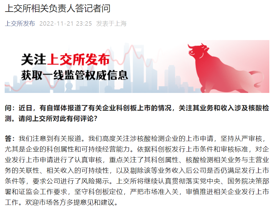 随着12月初防疫政策调整,各地纷纷取消了常态化核酸检测,公共场所也不再查验健康码、行程码,从之前的“应检尽检”到现在倡导“非必要不检测”,仿佛一夜之间,随处可见的核酸检测亭都消失了。 导 语 图源:中国新闻周刊 受新冠疫情影响,不少企业举步维艰,但口罩、新冠病毒检测等公司的利润却一飞冲天,业绩翻几倍、几十倍屡见不鲜。据统计,资本市场上,2021年有17家IVD企业在A股上市,分别为浩欧博、之江生物、易瑞生物、奥泰生物、科美诊断、诺禾致源、亚辉龙、睿昂基因、爱威科技、纳微科技、义翘神州、兰卫医学、禾信仪器、百普赛斯、诺唯赞、安旭生物和优宁维。2022年IPO排队/已上市的IVD企业也有近20家,分别为菲鹏生物、华大智造、艾迪康、英诺特、仁度生物、致善生物、微策生物、中翰生物、凯莱谱、丽珠试剂、美因基因、凯实生物、臻和科技、苏州雅睿、康为世纪、近岸蛋白、景杰生物、荣盛生物、翌圣生物等。 月前,不少媒体和投资者喊出“禁止核酸检测企业上市”。上交所和深交所也火速回应“高度关注,并从严审核科创属性和可持续经营能力”。与此同时,舆论对核酸检测企业的发酵达到了高潮。 那么,这些新冠检测相关企业还能顺利上市吗?经查询,IPO排队中的IVD企业仍有不少,如致善生物、微策生物已顺利过会,翌圣生物仍在等待上会,中翰生物还在问询中。