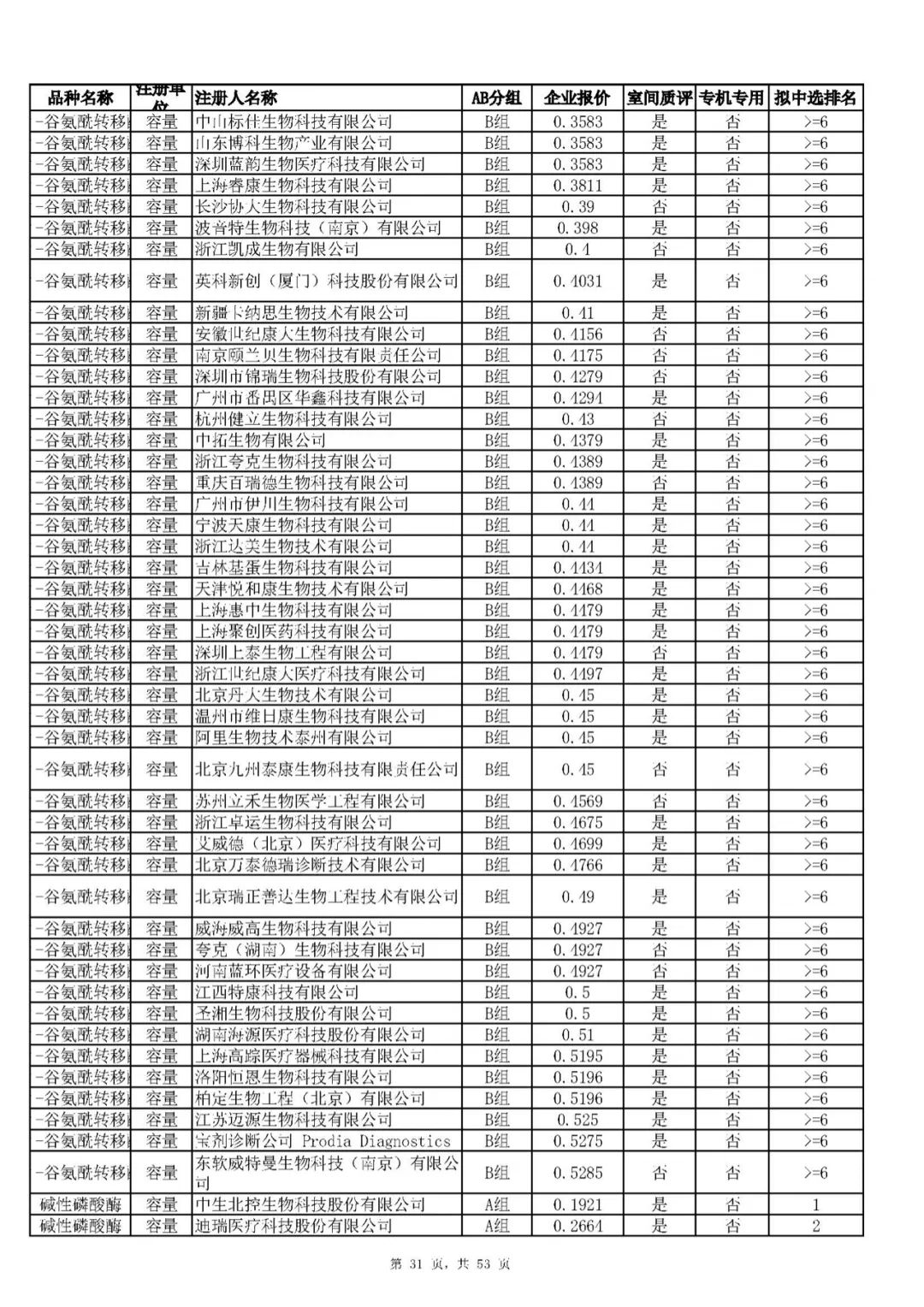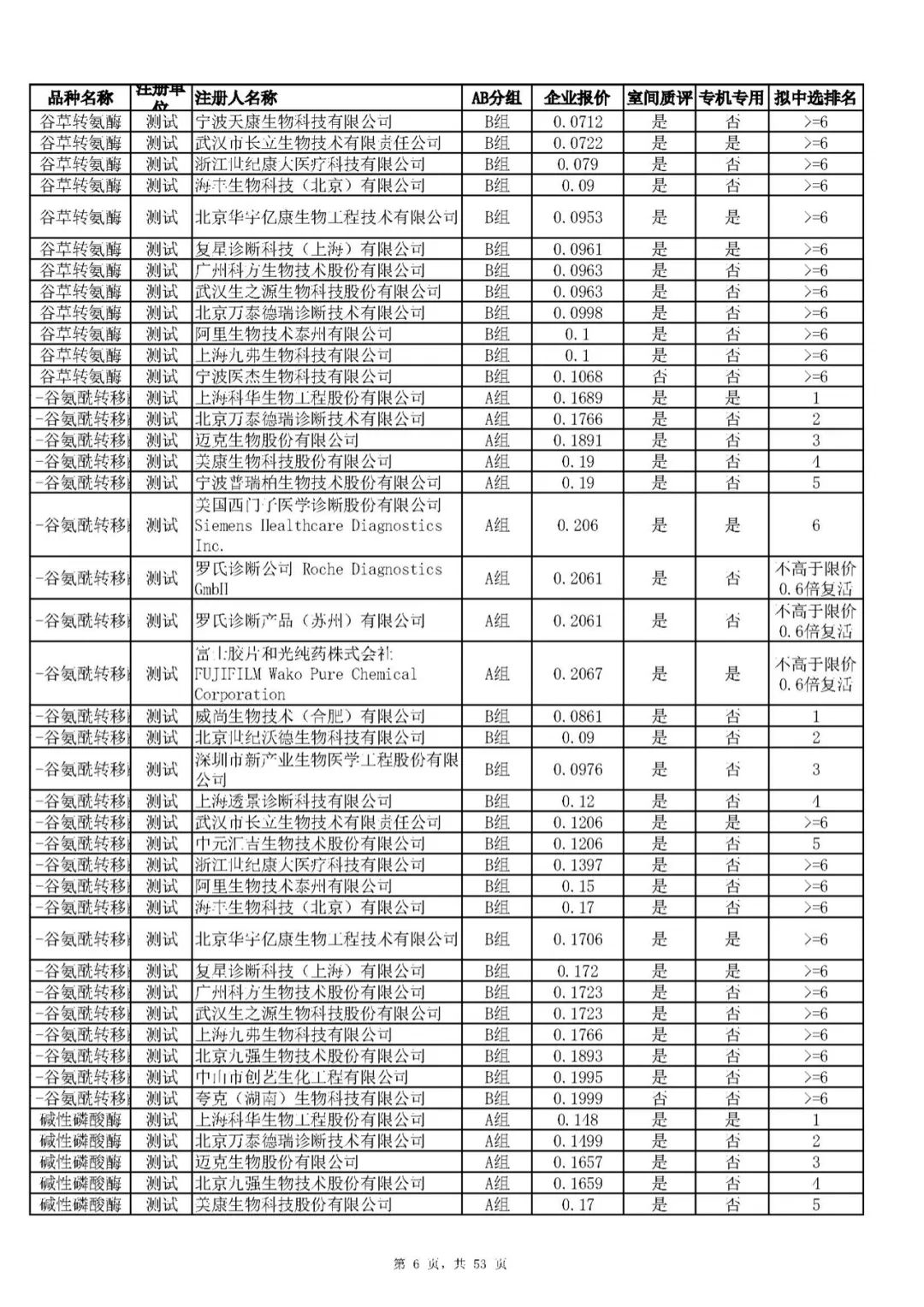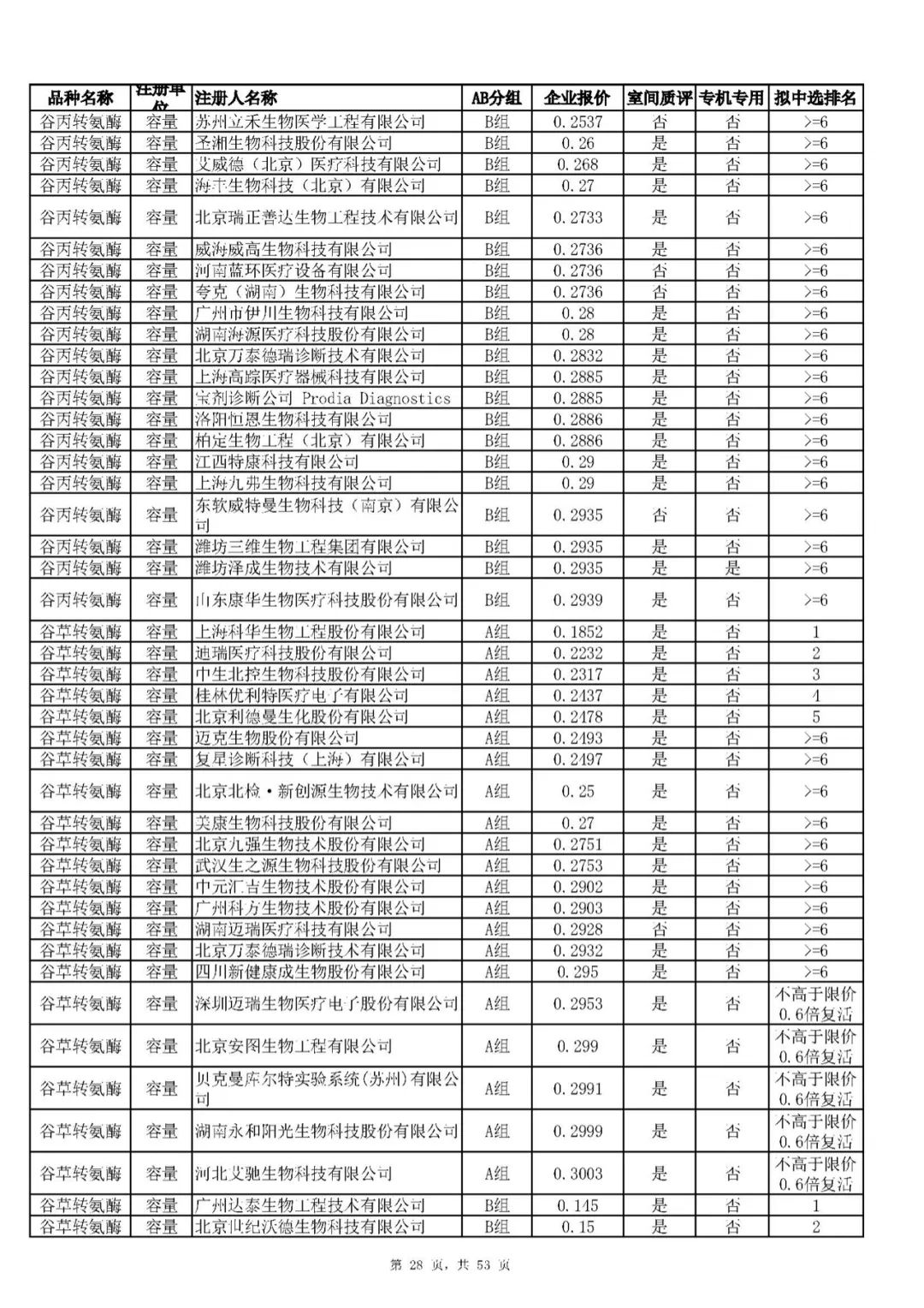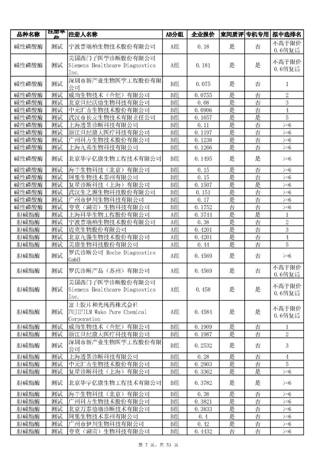 “肝功”生化省际联盟集采结果公示,结果价格洞穿底线……(附详细列表)