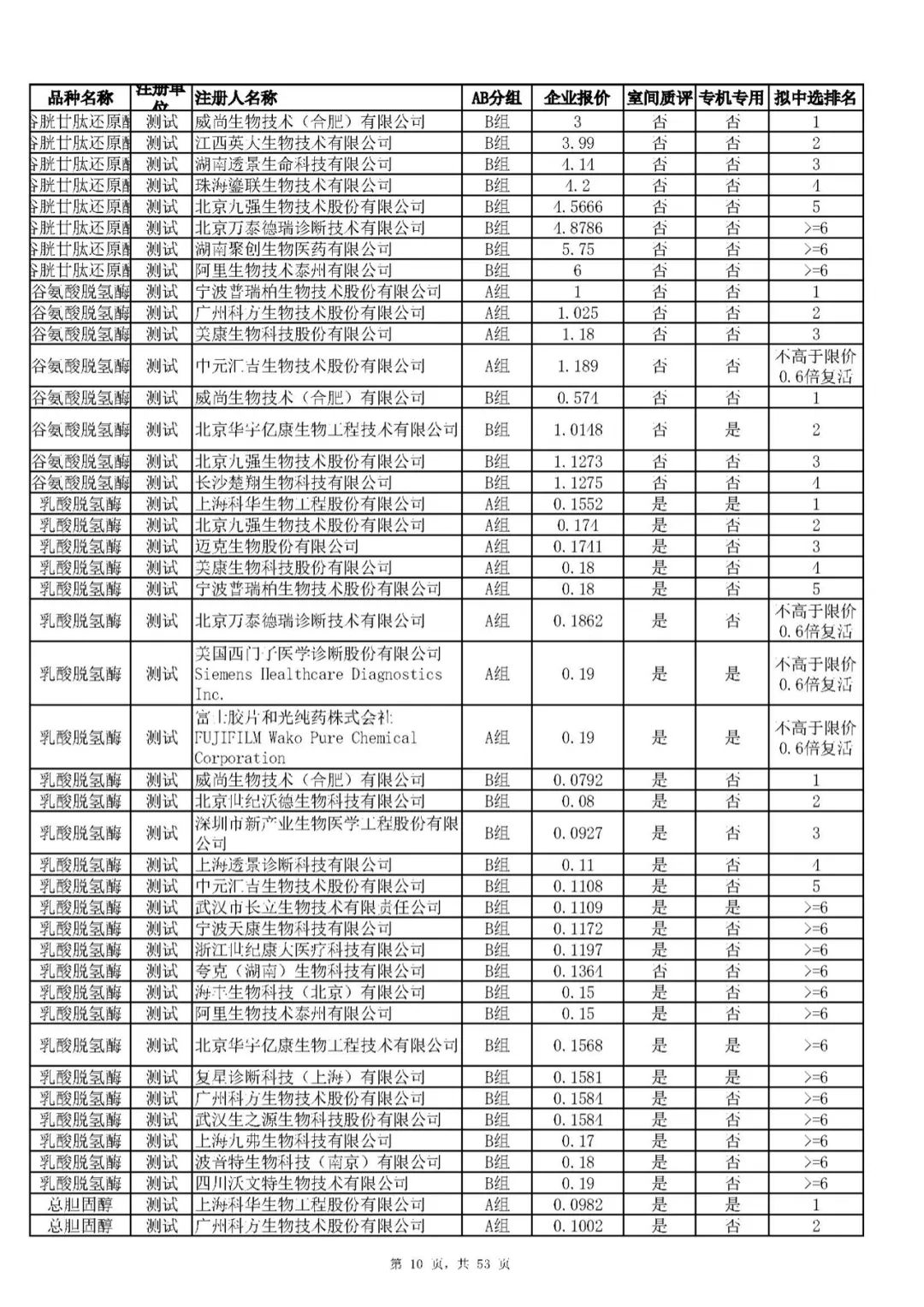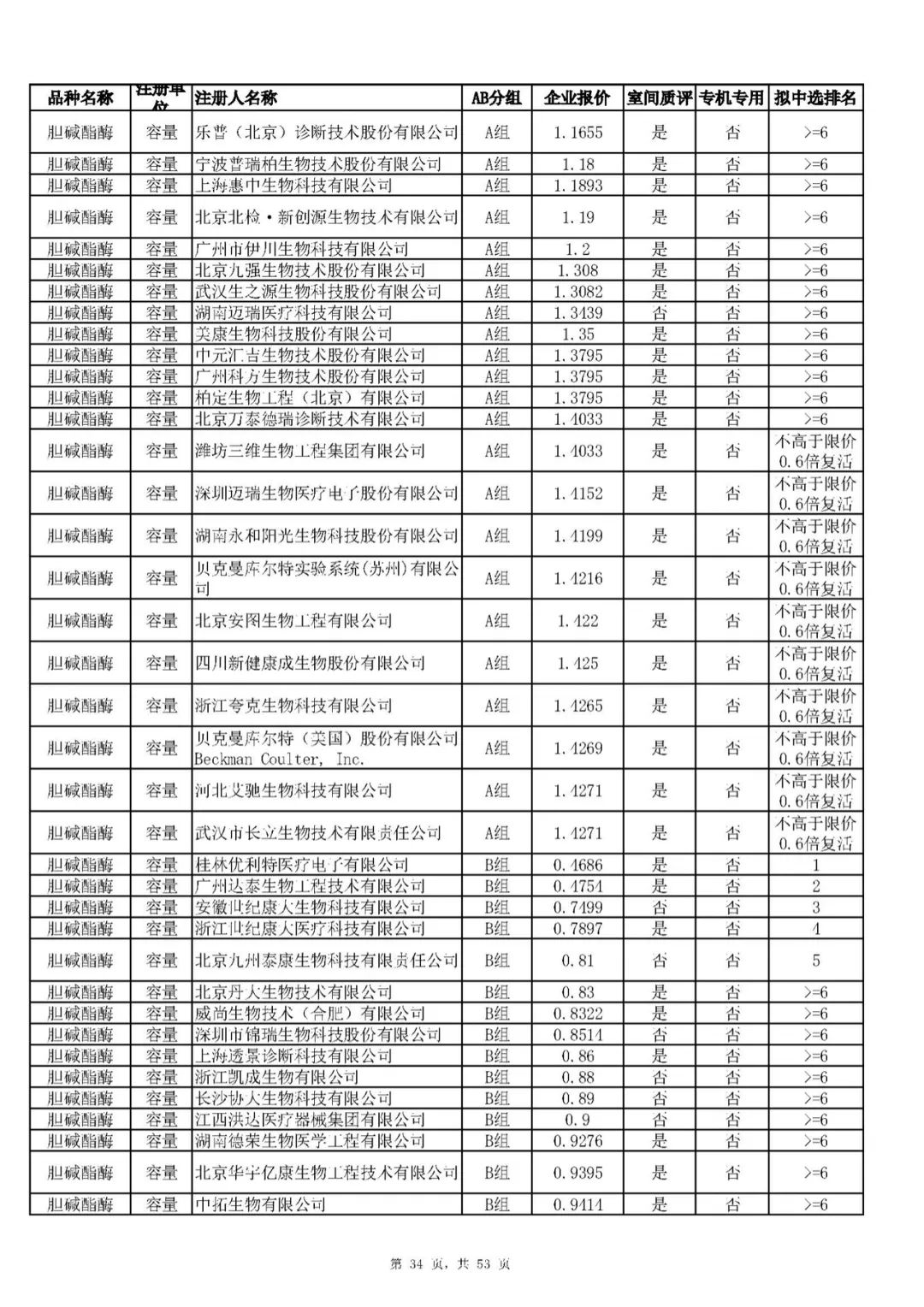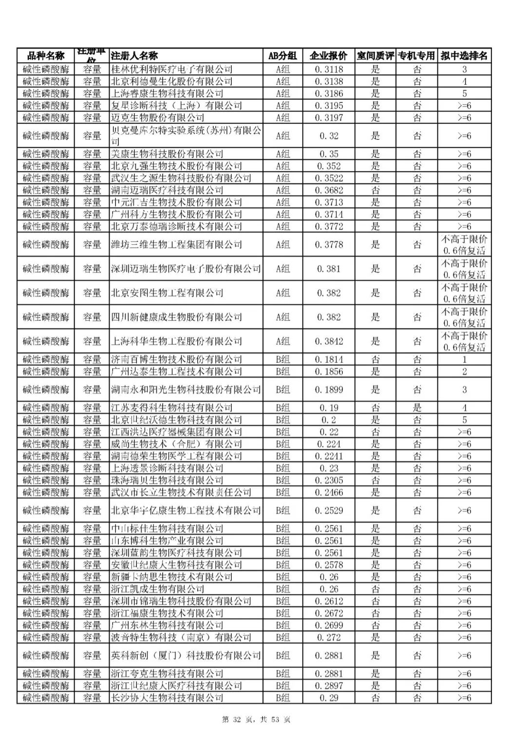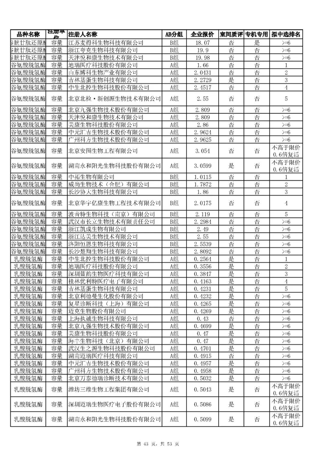 “肝功”生化省际联盟集采结果公示,结果价格洞穿底线……(附详细列表)