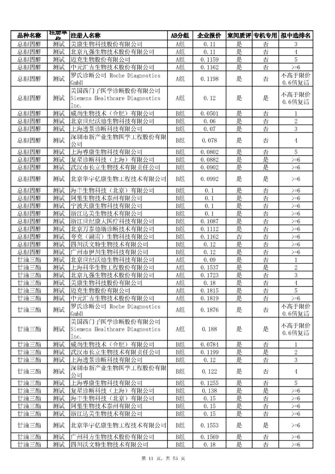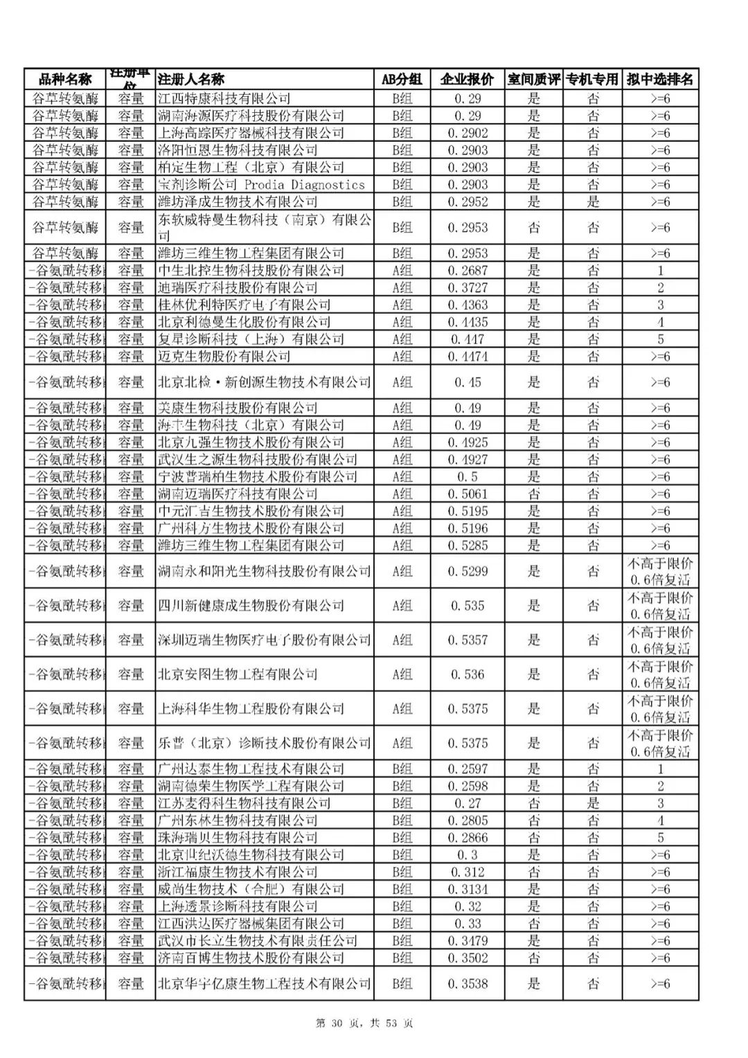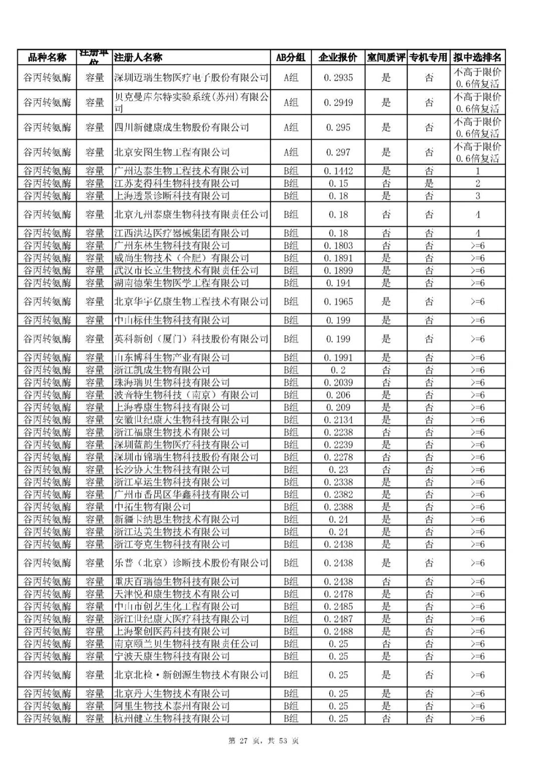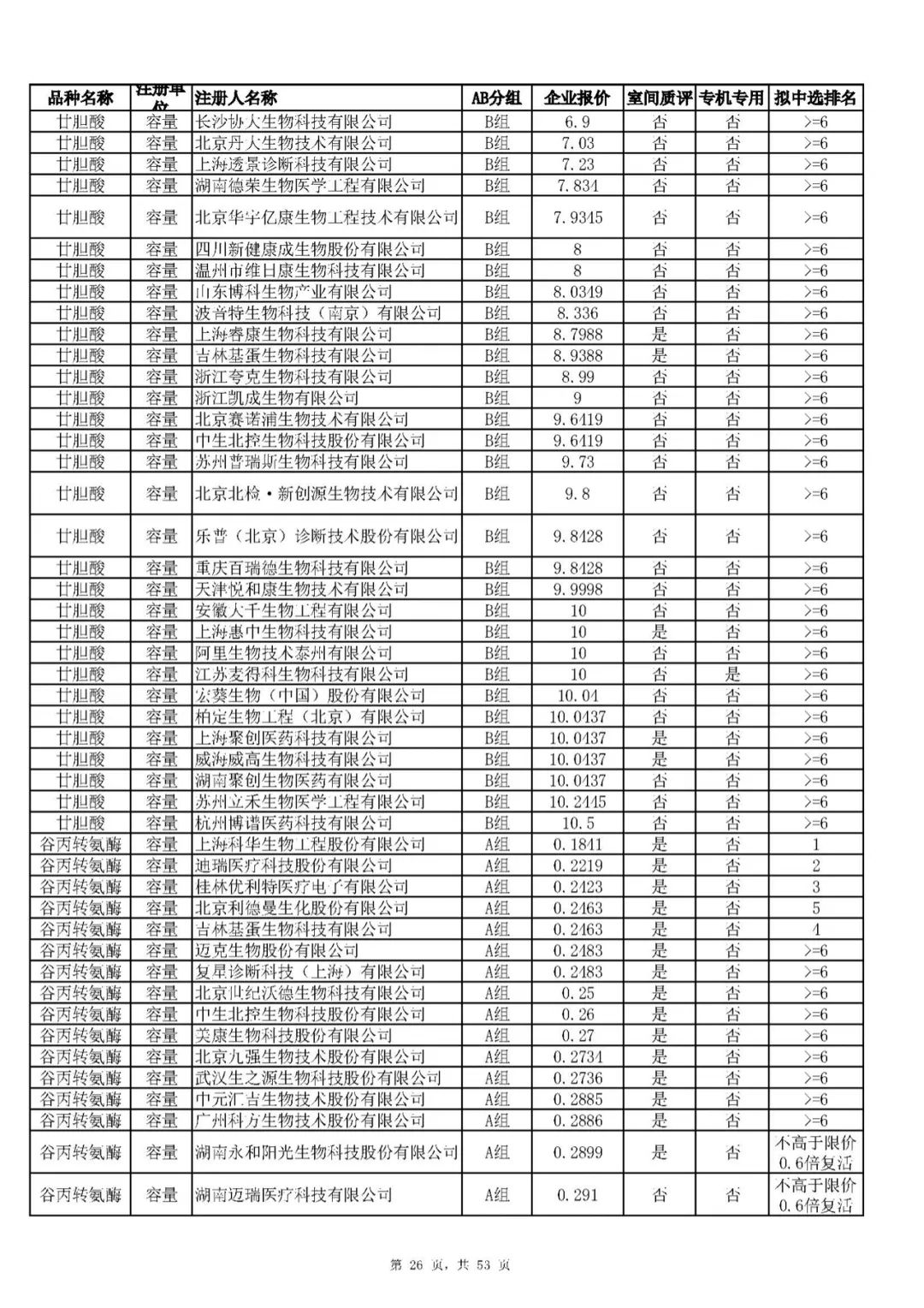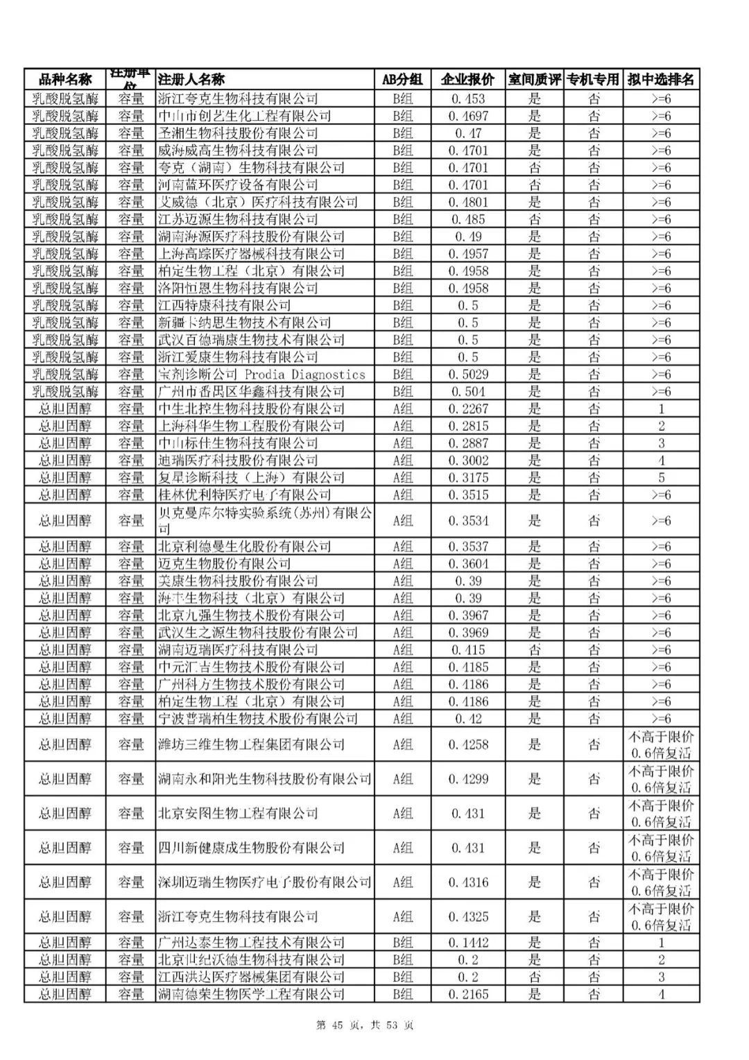 “肝功”生化省际联盟集采结果公示,结果价格洞穿底线……(附详细列表)