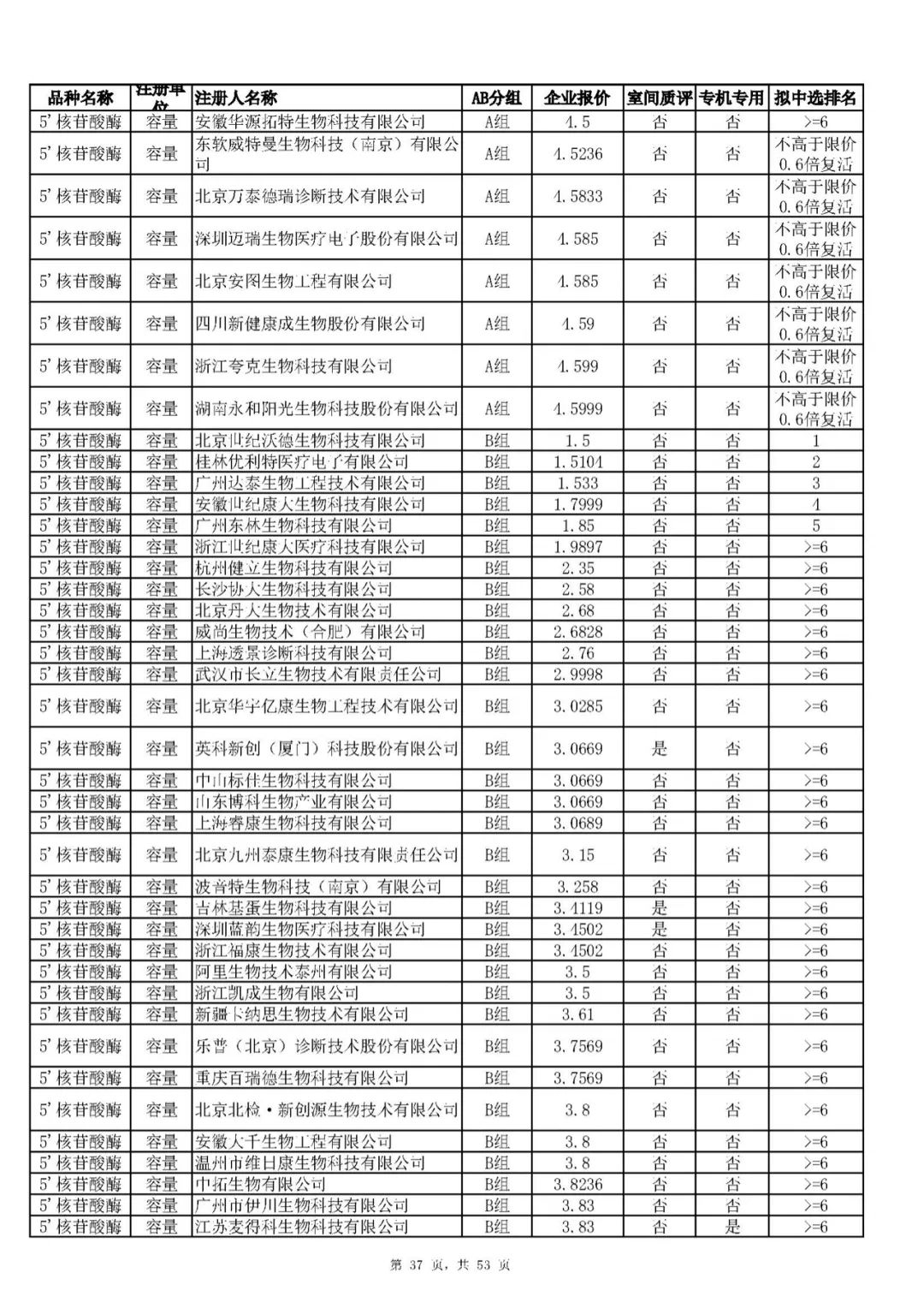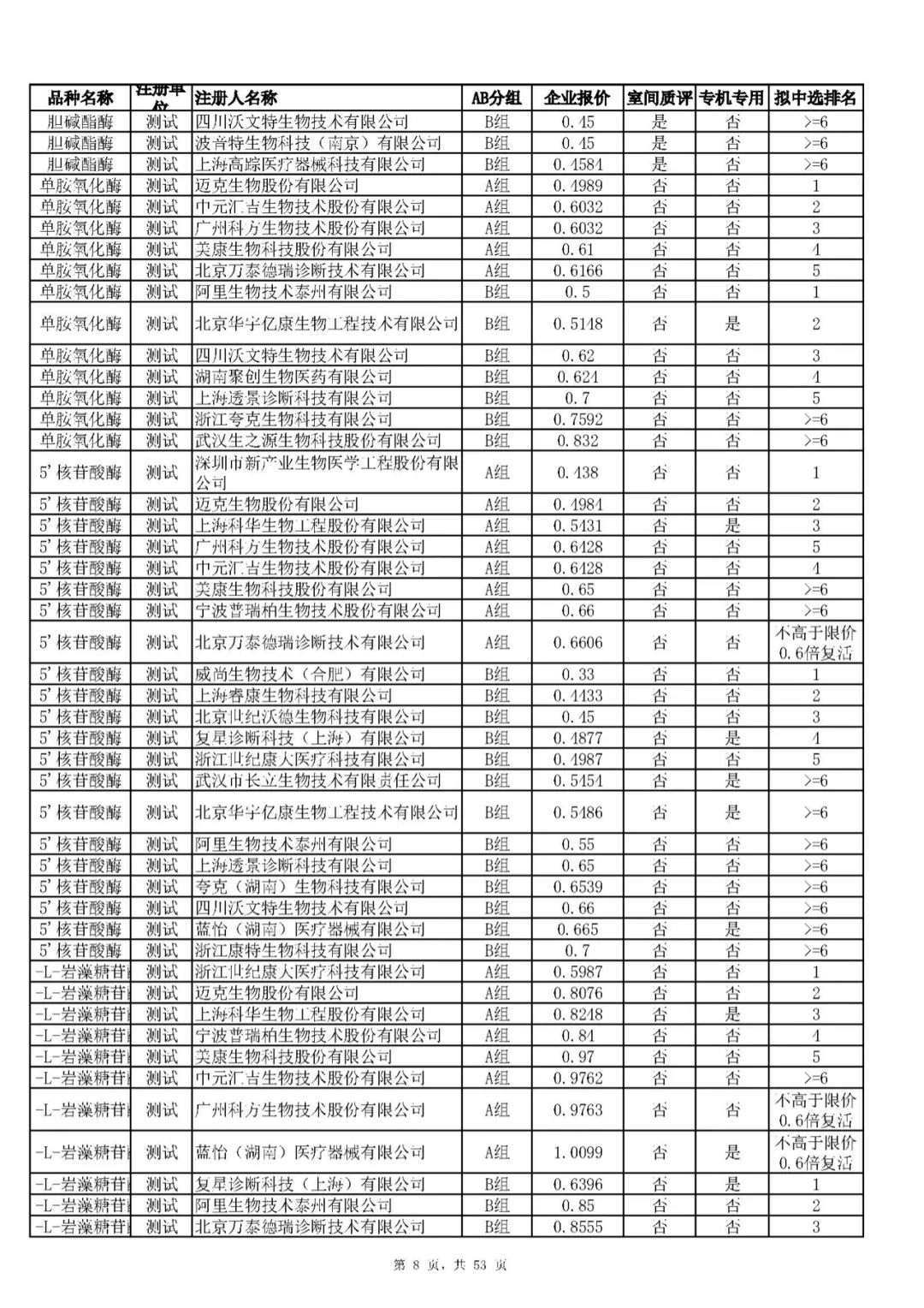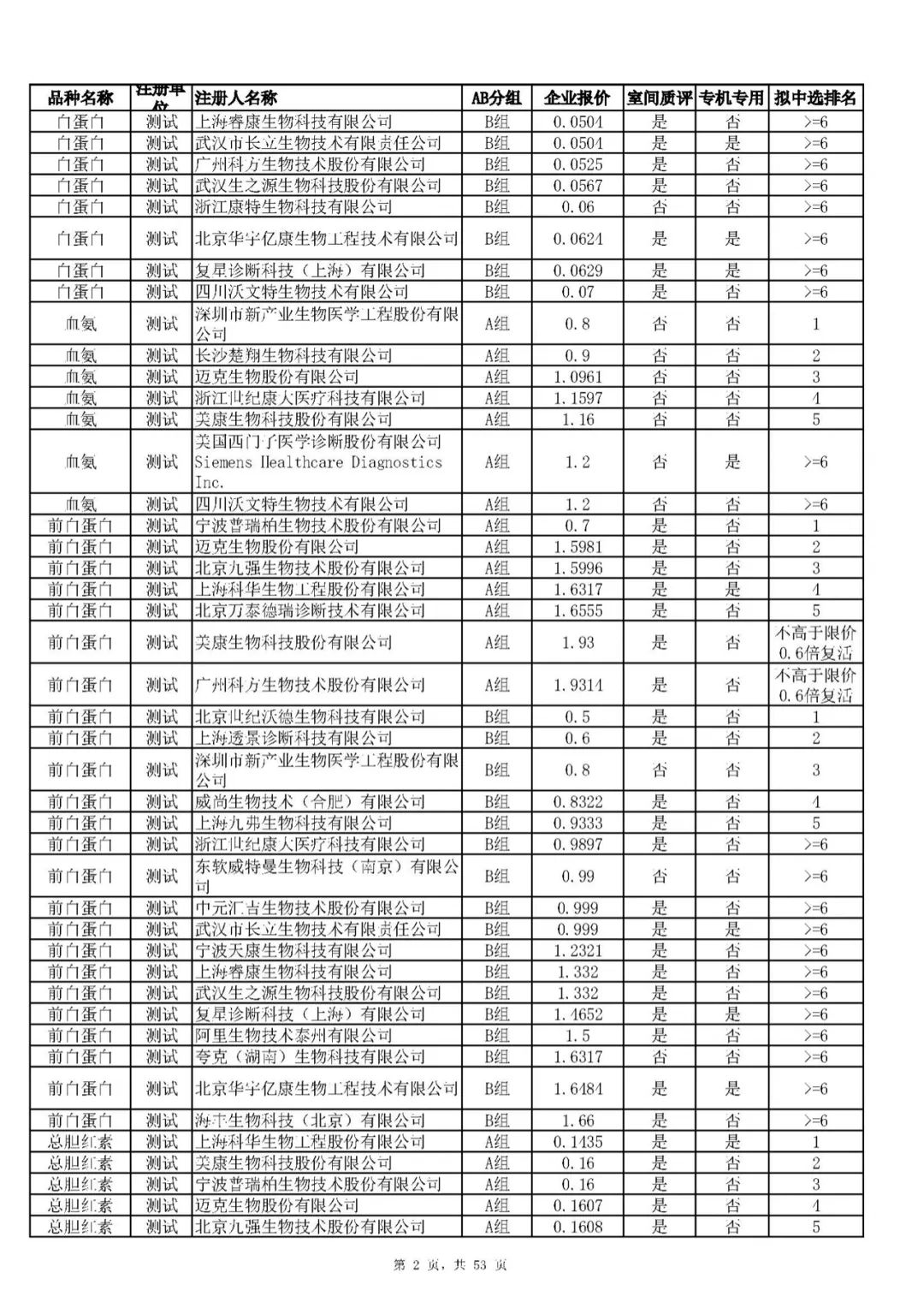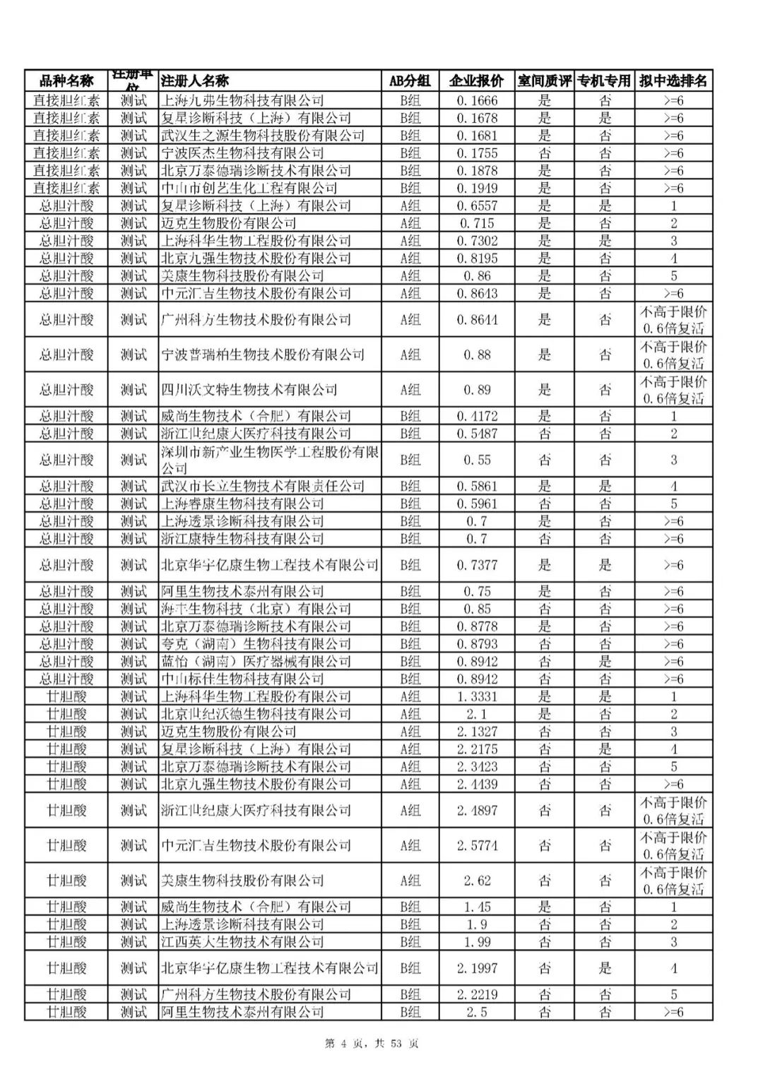 “肝功”生化省际联盟集采结果公示,结果价格洞穿底线……(附详细列表)