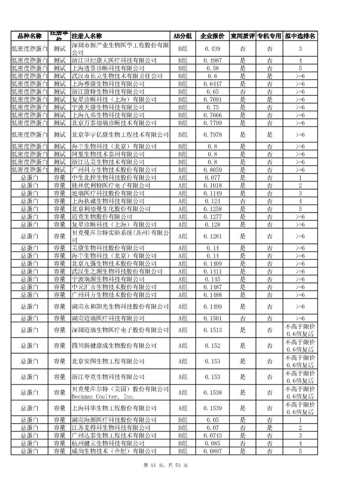 摘要: 关于肝功生化类检测试剂省际联盟集中带量采购拟中选结果公示的通知