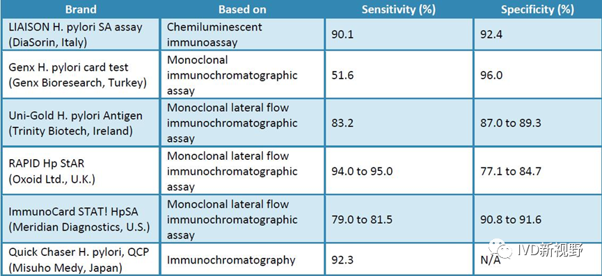 2023年1月13日,诺辉健康发布2022年度报告,引来行业人员的热议,幽幽管单价149元/个,作为一个传统的IVD产品,其销售额高达2亿元。 日前知名研报机构BCC发布2023版本幽门螺杆菌检测报告(Market Outlook Helicobacter pylori Testing-Global 日渐增多的胃溃疡患者,老龄化加剧以及感染幽门螺杆菌的老年群体数量增多,对POCT等检测设备需求旺盛也引导了幽门螺旋杆菌市场的发展。 背景 幽门螺杆菌(Helicobacter pylori,H.pylori)主要定植于胃内和有胃上皮化生的十二指肠黏膜,几乎所有H.pylori感染者都存在慢性活动性胃炎,25%~30%的H.pylori感染者会出现消化性溃疡、非溃疡性消化不良、胃黏膜相关淋巴组织淋巴瘤等消化道疾病,高达2%的患者发展为胃癌。1994年世界卫生组织将H.pylori列为胃腺癌的Ⅰ类致癌物,国际上已公认根除H.pylori能有效预防胃癌的发生。全球H.pylori感染人数不降反升,美国占据41.5%市场,其次是欧洲和亚太地区。我国H.pylori感染率约50%,是H.pylori感染与胃癌"双高发"国家。 检测方法、产品及市场容量 根据是否需要内镜检查可将常用的H.pylori检测方法分为侵入性和非侵入性方法。侵入性主要依赖于胃镜取材,涉及组织学检测、细菌培养、快速脲酶实验以及基于原位杂交技术的核酸检测技术等。非侵入性方法主要包括血清学检测、尿素呼气试验(UBT)、抗原检测以及其他方法。 尿素呼气试验(UBT):幽门螺杆菌检测最广泛使用的测试是尿素呼气测试。该测试显示出最高的特异性和敏感性(从90%到100%)。由于其操作简单,该测试用于检测成人和儿童以及怀孕期间的感染(6岁以下儿童特性性偏低)。其基于幽门螺杆菌产生内源性和特异性的尿素酶,在测试过程中摄入用碳同位素(13C或14C)标记的尿素胶囊,然后被脲酶水解成NH3和CO2,并通过胃壁吸收到血液中。这种标记的分子到达肺部并在呼吸中排泄,然后通过测试检测到。UBT 应在使用抗生素后 4 周和质子泵抑制剂(PPI)、H2受体拮抗剂和硫糖铝等药物混悬后两周进行,以避免假阳性结果。 全球市场份额到2027年预估达到3.12亿美元。 在国内市场主要是深圳中核海得威(13C、14C药字号),市场占有率超过50%,另外北京华亘安邦(13C,药字号)、江苏辅瑞森(14C)、安徽养和(13C、其中14C械字号) 血清学检测:血清学检测可检测血清幽门螺杆菌特异性免疫球蛋白 G、免疫球蛋白 A 和免疫球蛋白 M 抗体。在血清学检测中,可以使用各种方法(例如酶联免疫吸附测定(ELISA)、乳胶凝集技术或免疫层析来检测感染。血清学检测的总体敏感性为 85%,总体特异性为 79%。血清学检测是最优选的幽门螺杆菌检测方法,因为它比任何其他方法都便宜,也更方便。然而,血清学检测有一些局限性,包括它们无法监测抗菌治疗的有效性,因为患者可能在感染发生后很长时间内携带幽门螺杆菌特异性抗体。 国内共有幽门螺旋菌抗体注册证38张,包括艾康、艾博、英科新创等。 2021年全球市场份额约为1.29亿美元,2027年预估达到2.02亿美元。 抗原检测:使用单克隆或多克隆抗体检测粪便中细菌抗原的非侵入性免疫测定试验正被用于检测幽门螺杆菌。粪便抗原检测具有许多优点:无创、快速,具有良好的敏感性、特异性和可靠性。与血清学检测不同,粪便检测既可用于诊断感染,也可用于在治疗结束后四周监测治疗效果。 国内幽门螺杆菌抗原注册证有16张,包括创新生物、上海凯创、杭州莱和、杭州博拓等 国外主要抗原产品性能对比 2021年全球市场份额约为1.08亿美元,2027年预估达到1.83亿美元。 其他方法 分子生物学法:分子生物学方法检测灵敏度高,除胃黏膜组织外,还可采用含菌量较低的样本,如胃液、粪便、唾液等,故在侵入性和非侵入性检测中均可应用。分子生物学方法还可鉴别不同菌株,能更好地区分根除治疗后复发与二次感染。相较于内镜检查取活检样本、再分离培养行药敏试验,分子生物学方法可大大缩短评估药物敏感性的时间,有助于尽早开始治疗。然而,由于死菌DNA也可被检出、H.pylori与其他菌种共享同源序列、检测时发生污染等原因,该方法有一定的假阳性率,且检测设备昂贵,临床应用有限。目前国内外指南主要推荐分子生物学方法用于H.pylori耐药基因检测。 主要厂家有:江苏默乐、康为世纪、北京新基永康、上海芯超、达安基因以及优联瑞康 2021年全球市场份额约为1.06亿美元,2027年预估达到1.53亿美元。 其他 综上,幽门螺旋杆菌各检测方法学优点和缺点如下 根据BCC调查,幽门螺旋杆菌检测产品主要终端用户在于医院、门诊及第三方实验室。其中,在国外市场,以诊断中心为主,占据市场份额一半以上。 参考文献 |