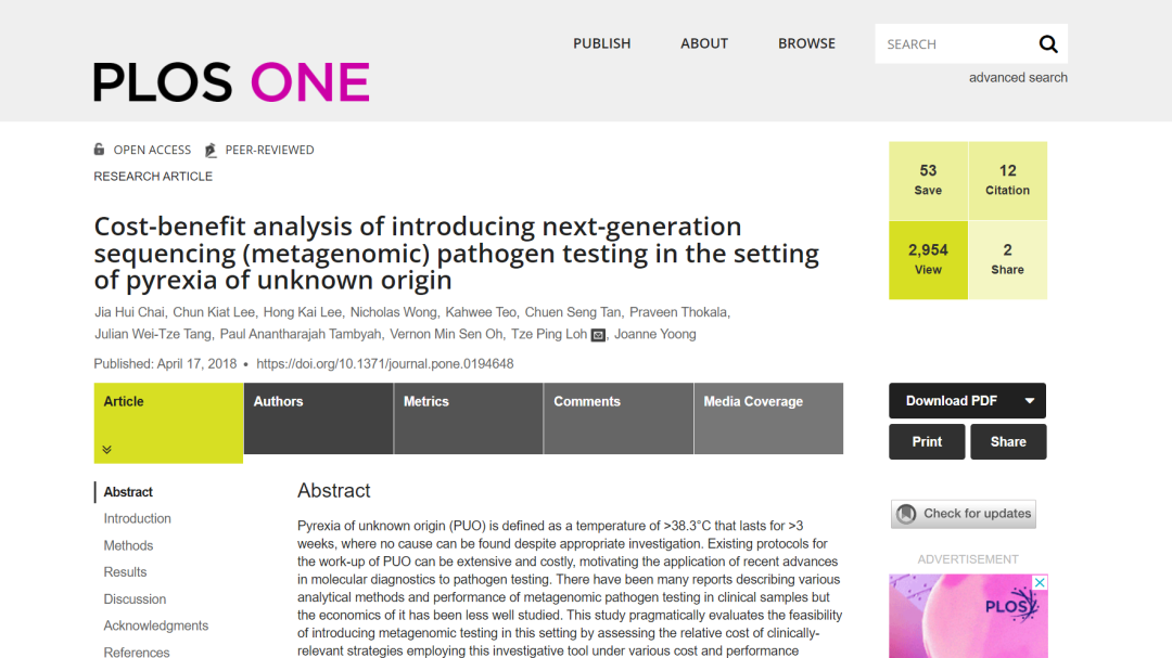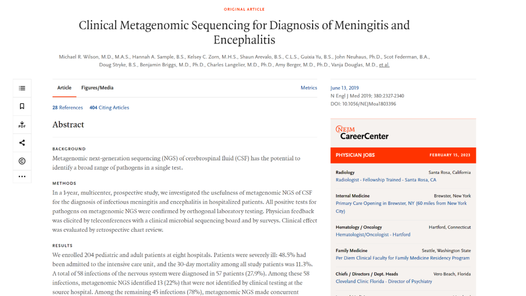 临床实践的核心原型之一是患者明显患病但缺乏明确的诊断依据。对于传染病来说,病原体的近乎无限的多样性使这种困境成为一种独特的挑战。进行快速基因测序以识别非人类的微生物基因组信息的测试(也被称为元基因组第二代测序,或mNGS)的出现为这种情况提供了一种独特的吸引力。病原体的基因识别可以为受感染患者的核心之谜提供一个即时的答案。但问题也同样存在,mNGS的成本通常是大多数传统传染病实验室测试的10-20倍。 对于临床医生和实验室而言,如何部署mNGS以最大限度地提高诊断率,同时最大限度地降低成本,是一个非常重要且严肃的课题。在这篇文章当中,我们试图从和应用场景有关的三种角度来探讨这个问题,同时试图对临床效益和实验室管理的理论框架进行优化。 从微生物学家的角度 mNGS的基础技术仍处于早期阶段。传统的微生物学检测通常提供一系列的信息,而不是单一的阳性或阴性信号。分离物要么是有生命力的,要么是没有生命力的,生物体的相对丰度可以与正常菌群或污染信号进行比较,而表型敏感性测试则为治疗提供依据。相比之下,mNGS提供的是关于所有生物体的基本二元诊断信息,与发病机制或临床假设无关。而且每个结果的含义可能并不完全清楚,往往没有常规的测试作为适当的比较对象。 就算在新技术利用最广泛的美国,mNGS测试几乎完全限于两个参考实验,Karius公司和加利福尼亚大学旧金山分校(UCSF)。Karius公司提供的周转时间只有几天,但分析仅限于DNA。UCSF同时包括RNA和DNA,虽然宣传的结果时间是1-2周。同时,另一项最重要的限制是其标本类型仅限于血浆和脑脊液(CSF)。 微生物诊断的一个关键原则是,在原发感染部位和生物体负担最大的时候取样,可以获得最高的结果。但在实践中,实验室经常在不满足这些条件的情况下使用mNGS,例如,直接标本难以获得,又或者在抗菌治疗开始很久之后才进行采样。 对血浆mNGS的研究涵盖了从肺炎到软组织感染的各种临床适应症,但是对于哪些标准应作为使用该测试的前置条件,目前还没有达成共识。另一方面,CSF的mNGS已被应用于少数疾病状态,并可以作为中枢神经系统感染的补充标志物使用,因此,如果实验室希望开展mNGS的话,从CSF入手是个不错的选择。 从临床医生的角度 现有的数据表明,mNGS可以增强诊断感染性病原体的常规检测,但不应该取代它。在一项包括41名既定传染病导至的脑炎患者的研究中,加州大学旧金山分校的mNGS检测在32%的患者中发现了与常规检测相同的病原体,在22%的患者中发现了常规检测未发现的病原体;但是,mNGS在45%的患者中漏掉了常规检测发现的病原体[1]。这表明了临床医生的一个基本问题。没有临床真实情况的诊断金标准,就很难计算mNGS检测的临床灵敏度或特异性。 此外,NGS出色的灵敏度可能会导至对共生生物和不可能的病原体的假阳性鉴定。在对348名出现败血症症状的患者进行的Karius测试的初步评估中,18%的患者仅通过mNGS就获得了阳性结果(未通过常规测试检测),其中的病原体被认为是“不太可能”(9%)或“可能”(9%)的感染原因[2]。这使临床医生处于一个困难的境地,即到底如何确定什么代表了真正的感染。 面对不确定的临床效用和高成本,医疗机构经常将mNGS作为广谱抗菌治疗后病情仍在恶化的患者的最后手段来部署。然而,临床证据表明,mNGS在疾病的早期阶段检测出病原体的可能性最大[3]。 为了解决这个问题,西雅图儿童医院(Seattle Children’s Hospital)制定一个小儿脑炎的方案,鼓励在感染的急性期收集mNGS的样本,然后冷冻保存,同时等待通过常规方法进行初步检测的结果(如下图所示)。 从实验室管理的角度 在医院实施mNGS的一个重要障碍是费用。对于Karius和UCSF来说,一次检测可能要花费2000-2500美元。然而,脑炎的诊断评估经常导至大量的实验室、药物和医院费用。一般来说,在诊断评估中获得的任何一个测试通常需要65-560美元(中位数:181美元)*。 12 安悦 上述成本核算是基于西雅图儿童医院公布的标准收费数据中的自费率,用于单项检测。 在西雅图儿童医院一项分析分析中,比较了有无mNGS诊断评估的成本。其传染病中心对脑炎的诊断采取了分层的方法,其中每层评估通常需要约为3000美元的费用用于实验室研究。这与mNGS的费用相近,而且为了进一步了解情况,在其机构中,该费用成本与头部MRI的费用相似。 总的来说,无论有无mNGS,检测费用都远远低于在重症监护室住院一天的估计费用(16,000美元)或脑活检的估计费用(46,500美元)。 12 安悦 脑活检是脑炎检查的最后手段。 在该医院提出的方案中,考虑到了这种粗略的成本比对,结果表明,如果mNGS可以避免大量的额外检查或脑活检,或缩短哪怕1天的住院时间,就值得进行检测。如果每25个病例中只有一个病例的mNGS结果可以避免脑活检,那么就达到了成本收益线,而且这还没有考虑到避免这种手术的不可估量的价值。 mNGS在传染性疾病中的未来 如果我们希望把mNGS这项工具用好,那就有必要了解其结果在多大程度上导至了类似的成本节约。例如,一在个针对不明原因发烧的成本效益模型估计中,血浆mNGS必须在60%时间内提供可操作的结果才能达到收支平衡[4]。可惜的是,目前文献中很少有关于传染病的mNGS的经济评估,这还需要更多的研究。 更重要的是,临床医生需要一些工具来帮助识别哪些患者有可