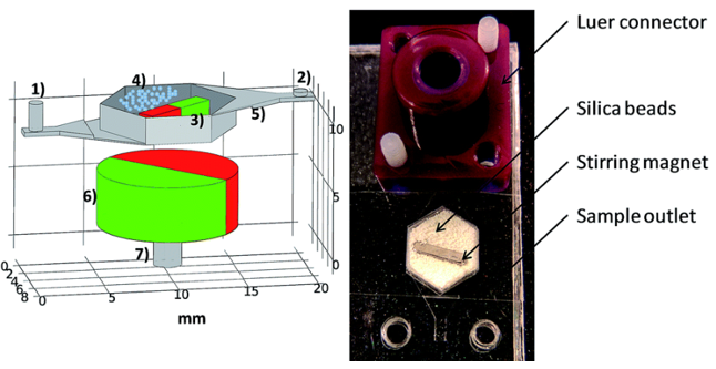 图 1 当面对具体的核酸检测需求时,对样品裂解、核酸提取和扩增检测方法的合理选择与组合,需要统筹考虑众多因素,如样品类型、样品体积、待分析核酸的来源(人的细胞、细菌、病毒等)、脱氧核糖核酸(deoxyribonucleic acid, DNA) 或是核糖核酸(ribonucleic acid, RNA)分析、检测灵敏度、检测靶标数目等。 没有一种单一固定的方法可以适用所有类型样品的核酸检测。 一、样品裂解 样品裂解是核酸分析的第一步。破坏包裹在核酸外的细胞膜或细胞壁,释放核酸的方法主要包括化学裂解、机械裂解、电裂解和热裂解等方式。 1.1 化学裂解 化学裂解依据裂解样品和细胞的类型而选择对应的化学物质,如用高离液盐、碱溶液、表面活性剂、蛋白酶 K、溶菌酶等,来溶解破坏细胞膜或细菌壁。 图 2 化学裂解操作简单、条件温和,不需要复杂的配套仪器,但是在后续的核酸提取过程中往往需要清除裂解液中抑制扩增的物质。 1.2 机械裂解 机械裂解是利用机械作用力(剪切力、震荡力、研磨力等),对细胞结构的直接破坏来释放细胞内物质的方法。超声破胞、微珠研磨等都属于机械裂解释放核酸的有效方法。 图 3 其特点是效率较高、速度快,能非特异性地裂解所有细菌细胞且可不引入影响后续扩增的化学试剂,免除了后续清除的麻烦,尤其对于难以破胞的细菌、真菌更是最佳的选择。 1.3 电裂解 电裂解是指利用高强度电场使细胞膜表面产生不可逆孔洞,从而释放胞内物质的方法。 当外界电场施加在细胞上,细胞膜会产生跨膜电压,当该电压超过一定的阈值时,细胞膜就会产生不可逆的损坏,导至细胞的裂解。 图 4 宏观尺度的电裂解需要在样品中直接施加高电压,微观尺度的电裂解需要借助微电极产生的电场作用于细胞上。 电裂解缺点在于电极的工作寿命短,高电压可能导至水解、局部过热以及蛋白变性。 1.4 热裂解 热裂解是通过反复冻融细胞,在细胞膜上形成冰晶,破 坏 细 胞 膜 从 而 释 放 胞 内 核 酸 的 裂 解 方式。这种方法比较耗时,操作繁琐。 图 5 热裂解的另一种方式是利用高温(90-100 ℃) 使细胞壁或细胞膜的蛋白变性,从而破坏细胞。 二、核酸提取纯化 核酸的提取与纯化是为了保证样品中的核酸完整性与纯度,使后续的核酸扩增反应可以顺利进行。 核酸提取方法大致可分为液相提取与固相提取。 2.1 液相提取 液相提取主要有苯酚-氯仿法。苯酚氯仿与样品经过激烈的混合和离心后,生物样品中的蛋白质被苯酚氯仿变性并被萃取到下层的有机相而核酸分子则被保留在上层的水相中。 图 6 该方法由于使用了有毒挥发性有机试剂,对实验者健康有较大影响,因而已逐渐被其他核酸提取方法所取代。 2.2 固相提取 固相提取按照原理分类主要有三种技术方法:凝胶过滤、基于电荷可逆吸附的离子交换色谱法和基于可逆表面吸附的亲和色谱法。 这些方法都能与离心柱或色谱柱结合,后两种方法还能够结合到微珠表面。 凝胶过滤方法的原理:依据核酸分子能够通过特定孔径大小的凝胶,而小分子则会滞留在孔中的特性。交联葡聚糖及其衍生物是最常使用的基质。这种方法无法分离和核酸分子尺寸相近的分子。 离子交换色谱方法的原理:带负电的核酸分子可选择性地结合到被游离平衡离子包围的带电基团表面,未结合的杂质被清洗掉,随后通过大量的游离离子取代核酸分子,与带电基团表面的结合,来释放核酸分子。二乙基氨基乙基纤维素是常用的阴离子交换树脂。 基于可逆表面吸附的亲和色谱法的原理:在高离液盐或高浓度醇的酸性环境中,带负电核酸分子与带负电硅基表面会因高离子强度和氢键而吸附结合;当去除高离液盐或是醇的环境后,核酸会被释放。 图 7 该方法用于核酸提取通常分为四步:裂解、结合、清洗和洗脱。亲和色谱法无需使用有毒试剂,对实验操作人员的伤害少,且操作简单、用时短。 三、核酸扩增 待检测样品中的核酸物质含量通常较低,只有通过核酸扩增才能达到被特异性检出的水平。 核酸扩增技术根据工作温度的不同可分为变温扩增、等温扩增。此外,近年来有别于单一腔体中的扩增技术,数字扩增技术备受亲睐。 3.1 变温扩增 变温扩增技术主要是指PCR。 图 8 3.2 恒温扩增 恒温扩增技术利用生物体的DNA或RNA合成酶,无需温度循环即可实现核酸的扩增,如LAMP、RCA、HDA、RPA等。 图 9 典型的核酸等温扩增技术特点及产物检测方式 3.3 数字扩增 数字扩增是将核酸样品分散到成千上万个独立隔绝的空间中进行大规模的平行核酸扩增反应,然后含有目标核酸片段的微反应空间会经扩增得到荧光信号。 最终通过直接计数或泊松分布公式即可对原始样本的核酸数进行计算。 图 10 四、扩增产物检测 在核酸扩增过程中或完成扩增后,检测扩增产物的量是获取靶标核酸信息的重要步骤。 图 11 常见的核酸信号检测技术有光学检测、电化学检测等。可以根据实验或者诊断的需求选择合适的产物分析技术,从而完成核酸检测。 [1] 便携式全集成核酸分析系统技术综述 免责声明:文章内容仅供参考,不构成投资建议。 |