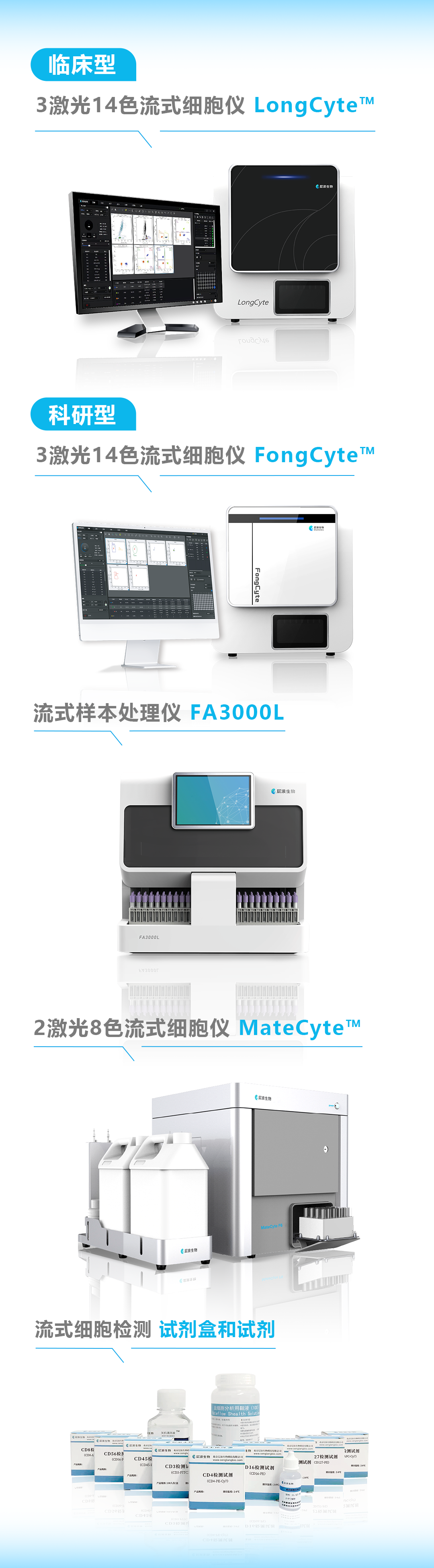 LongCyte™功能及特性 01 26 种型号配置可选, 低配可原位升级至高配 LongCyteTM 具有26种型号,系统配置灵活,它的光学系统、检测器单元和电子系统可更换:激光器配置1-3个,包括488 nm激光器、638 nm激光器和 405 nm激光器 ;仪器预留激光器及检测器位置,可实现低配原机升级至高配三激光或者配置更换。LongCyteTM 最高配置3激光14色流式细胞仪可同时检测 14个荧光参数(488nm 5色、638nm 3色,405nm 6色)。 02 标配自动进样系统 1 标配内置孔板式进样盘,节省空间; 2 兼容多种进样器:96 孔板(U底、V底、平底), 40 孔试管架、40 孔 EP 管; 3 自动进样、手动进样随意切换。 03 专利设计的搅拌功能 1 单管搅拌混匀: 可设置搅拌力度和时间, 保证样本充分混匀且单次处理; 2 样本间自动清洗内外壁: 极低的携带污染率; 3 智能识别试管底部: 保证珍贵样本彻底吸干,不剩一滴残留; 4 自动报警与处理故障问题: 防撞针系统和排堵功能。 04 体积法绝对计数 1 采用高精密度的定量泵进样; 2 经过校准的测量系统,保证结果准确; 3 兼容Trucount法测量,自动出结果。 05 不断升级的智能分析软件 - ModelFlower 1 中英文界面切换,Windows操作模式, 简洁直观; 2 强大的模板功能,可以保存、复制、 批量应用模板; 3 快速补偿及自动补偿功能; 4 测量时可同时分析已测数据; 5 可进行40孔流式管/EP管 或96孔板批量化测量; 6 自动质控监测仪器状态,记录红蓝光 延迟及仪器分辨率等性能参数状态, 形成Levey - Jennings质控图, 全程监测仪器状态; 7 完善的数据导出功能,可以随心所欲的 设置导出格式,方便统计测量结果或 进行LIS连接上传。 8 完善的Lis联网功能,经过多家重点医院的 使用测评,满足大部分用户的需求,解决 数据整理和上传的痛点; 9 检测报告直接输出。 10 兼容市面上所有的细胞因子数据格式, 方便导出数据。 更多层浪流式细胞仪 客服热线: 400-1011-131 13011121581(工作时间) 18612989793(非工作时间) 邮箱: sale@challenbio.com |