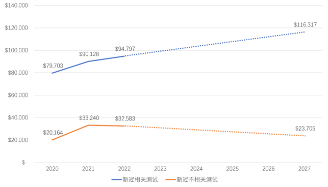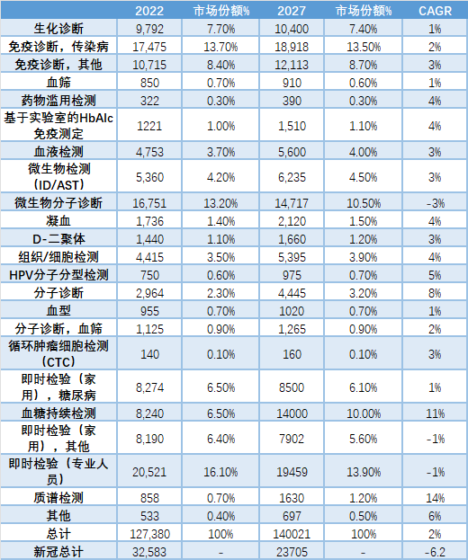 图3 | 2020-2027年新冠和非新冠IVD细分市场的综合表现