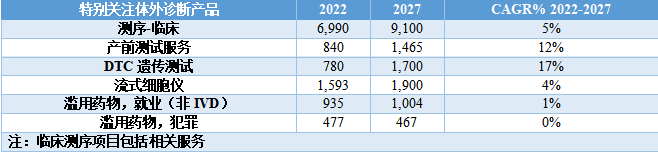 表2 | 2022-2027年特别关注体外诊断产品的全球市场