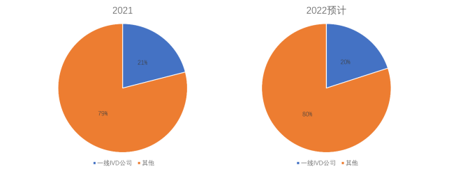 图2 | 2021年与2022年一线IVD公司销售额(单位:百分比)