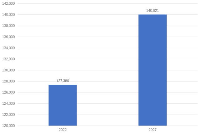 图1 | 2022年和2027年全球IVD市场规模(单位:十亿美元)