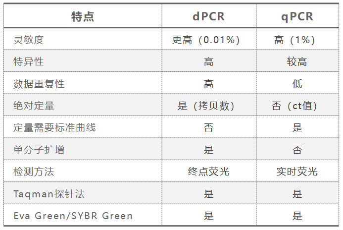 数字PCR(digital PCR, dPCR)技术是继real time PCR技术的第三代PCR技术,该技术具有超高灵敏检测特点。由于不需要标准品可利用泊松分布统计计算实现绝对定量,而称之为数字PCR技术。数字PCR技术应用领域广泛,包括肿瘤早期筛查、遗传生殖、感染性性疾病检测、环境微生物检测、产前诊断、科学研究和生物制药等领域。数字PCR可以定量样本中目标基因组或互补DNA(cDNA)、RNA的绝对拷贝数,因此,它可以用于多种应用。对于基因分型应用,dPCR具有足够的灵敏度,可用于罕见的等位基因或拷贝数变异检测,液体活检分析;确认基于CRISPR的基因组编辑或DNA质量评估所引起的同源性定向修复(HDR)或非同源末端连接(NHEJ)以及下一代测序(NGS)。另外,dPCR是一种高灵敏技术,可以从单个细胞中检测基因表达,确定microRNA的表达水平,鉴定病毒感染,并检测病毒载量。尽管这些试剂与传统的定量PCR(qPCR)分析非常相似,但定量方法却有所不同。dPCR和qPCR之间的异同点在以下dPCR步骤分解中概述。 数字PCR(dPCR)工作流程。分离基因组DNA(gDNA)或将mRNA样品转换为cDNA后,添加预混液,靶标特异性引物和探针。混合液经过稀释和分区,每个分区中有1个或0个目标。PCR扩增后,记录每个孔或液滴的荧光信号。阳性孔或液滴的数量提供了样品中起始目标gDNA或cDNA分子数量的准确计数。与所有基因组分析一样,必须获得核酸样品。对于基因分型应用,需要从目标组织或样品中纯化基因组DNA(gDNA)样品。为了进行基因表达分析,需要分离目标mRNA并通过逆转录酶分析将其转化为cDNA。与qPCR一样,dPCR使用热稳定的DNA聚合酶扩增靶DNA,因此无法直接扩增RNA。获得纯化的gDNA或cDNA后,将样品与正向和反向引物以及水解探针混合,水解引物设计为具有与目标靶基因/DNA互补的序列。引物退火至靶序列的外部区域,与典型的PCR反应相同,水解探针是为了提高检测特异性,5'核酸酶(水解)探针在正向引物和反向引物之间退火,水解探针包括5'荧光团和3'淬灭剂。与传统的qPCR分析一样,引物和探针设计是获得准确结果的关键。由于数字PCR检测和qPCR检测的设计相似,引物探针设计原则基本相同,但是dPCR对引物特异性要求较高,请参考探针设计注意事项。数字PCR,也可以使用SYBR或EvaGreen嵌入双链DNA染料完成检测,而不是5'核酸探针。这些引物的设计至关重要,因为无法将引物二聚体的扩增与靶标的扩增区分开。使用公认的测定方法并对产品进行熔解曲线分析可以确保测定的特异性。尽管数字PCR反应体系与qPCR测定相同,但数据生成阶段有所不同。dPCR分析首先将反应分为数万个纳升反应,因此每个分区中有1个或0个目标DNA分子。不同厂家实现分区的方法各异,在某些dPCR平台中,反应被分为单个的微孔,而其他dPCR平台则以油/水乳液形式产生纳升大小的反应液滴。dPCR不能像qPCR那样实时分析单个扩增反应,而是采用终点检测方法,检测10,000多个单独的PCR反应。分区完后,使用常规PCR循环参数扩增微分区中的模板DNA。当DNA聚合酶在循环的延伸/延伸部分从正向引物延伸时,其核酸外切酶活性会使探针降解,从而释放5'荧光团,进而释放出可检测的荧光。如果测定包括插入染料而不是水解探针,则荧光会随着双链PCR扩增子的积累而增加。PCR循环完成后,任何包含1个模板或目标DNA序列的分区都将发出荧光。缺少目标DNA的任何液滴或孔都不会发出荧光。带有荧光的液滴或孔的总数代表样品中目标分子的总数。从统计学上讲,某些分区有机会具有多于1个的目标DNA,可以通过应用泊松分布函数最终确定样品中目标分子的总数来进行校正。影响数字PCR实验成败因素较多,包括操作方法、引物探针特异性、退火温度、引物探针浓度、核酸模板浓度、PCR反应液配置等。不同dPCR平台因分区原理各异,所以可能会有各自的操作注意细节,这里主要介绍除操作方法外的影响因素。dPCR与qPCR检测原理相同,均可利用染料法和Taqman探针法检测荧光信号,所以针对dPCR引物探针特异性的设计要求基本相同。但是dPCR由于是在1nl(纳升)的反应体系中实现的扩增,一般在该体系中只有1个模板分子,实现引物和探针高特异与模板结合,要求引物和探针具有较高的特异性,因此在设计dPCR引物探针时需注意:扩增产物长度建议为60-120bp;上下游引物退火温度相差<1℃;对于Taqman探针法,建议使用双淬灭探针,尤其是当dPCR检测背景过高,干扰样本检测的准确性;建议探针修饰荧光基团的位置不要有G碱基,G碱基会淬灭荧光信号。前面提到dPCR对引物探针的特异性要求较高,所以对于扩增时退火温度要求也较高。一般qPCR选择用引物Tm值减去2-3℃作为退火温度,但是对dPCR退火温度的确定,需要用梯度退火筛选最适合的退火温度。当然,也可以用qPCR退火温度减去3-5℃作为dPCR退火温度,如果结果不稳定,重复性较差,仍然需要做梯度退火筛选最佳退火温度。总之,dPCR技术对退火温度较为敏感,需要筛选最佳退火温度,并且一般低于qPCR退火温度。一般地,qPCR退火时间为15-30秒,但是数字PCR退火时间较长,一般为45-90秒,其主要原因是数字PCR反应体系中都会加一些油(不同平台油的作用不同),导至数字PCR反应体系较大,需要较长的退火时间保证引物/探针与模板结合。另外,还需要注意数字PCR反应体系中有荧光信号,在PCR扩增过程中需要设计升降温速率,一般设计为1-2℃/s,一般采用2℃/s。qPCR检测的动态范围一般为10-107copies/ul,对应的