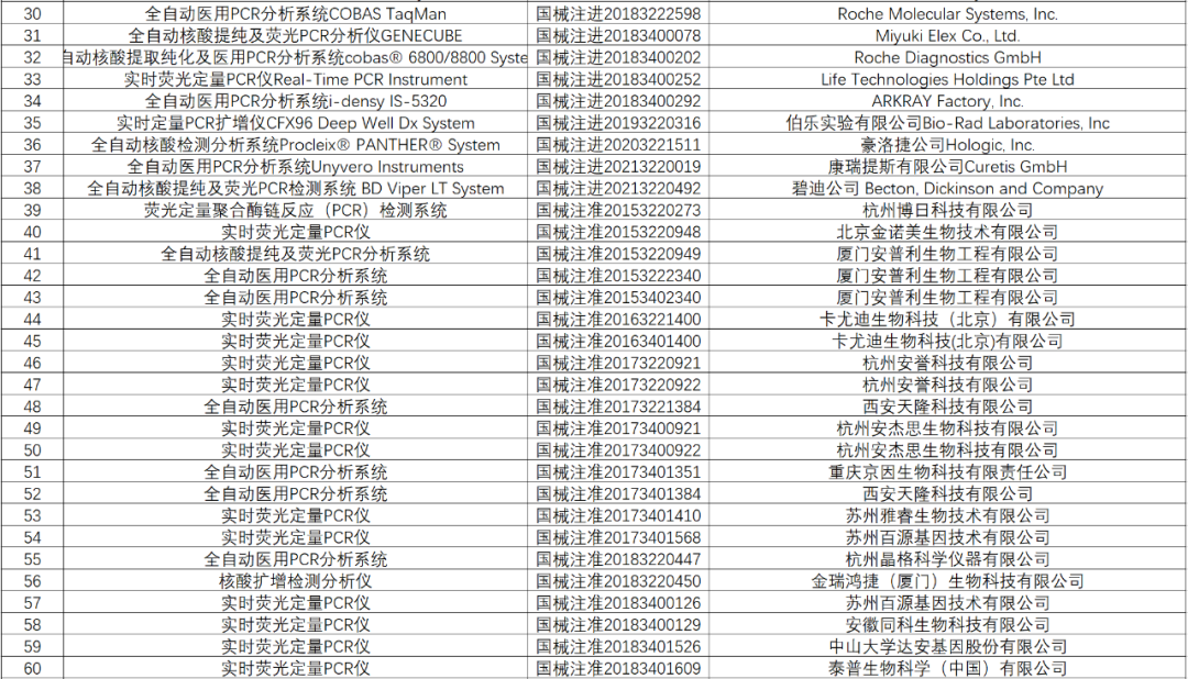 表 1 PCR试剂盒公司列表 PCR试剂盒年度批准情况见图6。