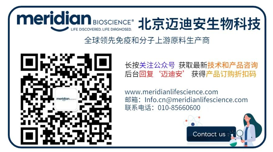 LAMP 精选 ↓ 欢迎联系我们咨询订购 ↓ 迈迪安的所有产品都可以提供商业大规模生产,符合ISO13485标准,并大量用于全球各种获得认证的商用检测中。 关于迈迪安 北京迈迪安生物科技有限公司是Meridian Bioscience在中国设立的全资子公司。 Meridian BioScience(以下简称:迈迪安)是一家全球领先的生物诊断公司,总部设立在美国,距今已有45年的历史。迈迪安公司分为诊断和生命科学两个部分,在中国地区的主营业务是生命科学产品,包括各种分子和免疫诊断检测的关键原料,如抗原抗体、免疫阻断剂、PCR和LAMP反应的聚合酶和优化的预混液、核苷酸等,为人体、动物、农业、环境及食品安全等各种检测提供全面的解决方案。45年来,迈迪安已经成为全球各领域诊断企业的首选原料供应商! |
