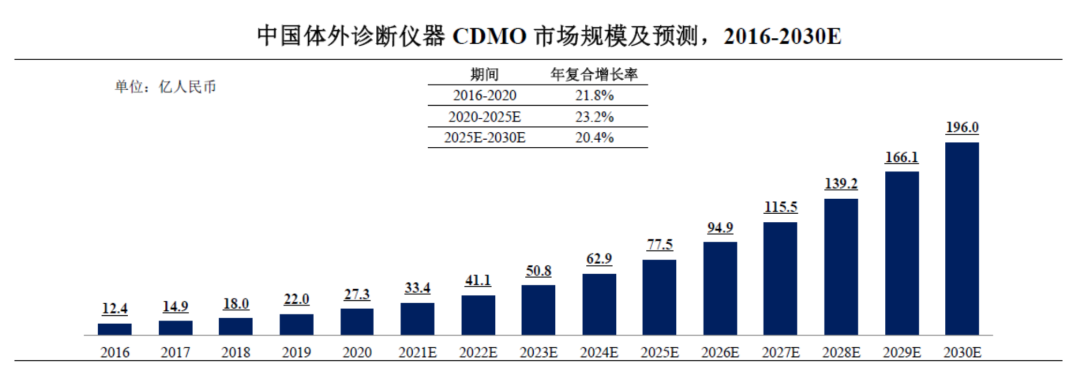 摘要: ,体外诊断仪器CDMO模式的市场认可度也将逐步提高,且国内规模较大的CDMO企业较少,未来诊断仪器CDMO潜在市场规模十分可观。