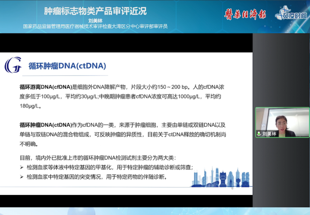 国内外已批准上市的循环肿瘤DNA检测(ctDNA)试剂主要分为两大类:一类是检测血浆等体液中特定基因的甲基化,用于特定肿瘤的辅助诊断或筛查。如NMPA和美国FDA相继批准了血浆SEPT9基因甲基化检测试剂,用于特定人群结直肠癌的辅助诊断。NMPA目前批准了肺泡灌洗液中SHOX2、RASSF1A 基因甲基化检测,用于肺癌的辅助诊断等。 另一类是检测血浆中特定基因的突变情况,用于特定药物的伴随诊断。如美国FDA和NMPA相继批准了血浆中EGFR基因的突变检测,用于奥希替尼等的伴随诊断,上述方法均基于荧光定量PCR方法。此外,美国FDA于2020年批准了Guardant Health的Guardant360 CDx血浆ctDNA检测试剂,用于识别表皮生长因子受体(EGFR)基因突变的转移性非小细胞肺癌(NSCLC)患者,这些患者可能会受益于奥西替尼的治疗。这是FDA批准的首个将NGS和液体活检技术结合,指导临床治疗决策的诊断检测。对于ctDNA检测,行业也面临着诸多问题。针对不同种类及不同时期的肿瘤,尚无样本采集、ctDNA提取以及扩增的标准流程;其次,体液中ctDNA会被巨噬细胞实时清除,从而导至体液中ctDNA含量极低,但目前大多数ctDNA研究集中于具有相对高浓度ctDNA的晚期癌症,缺乏早期癌症和低浓度ctDNA的详细经验;另外,ctDNA检测会出现一定程度的假阴性和假阳性,主要原因是肿瘤的异质性,原发肿瘤、转移性肿瘤、ctDNA三者之间存在差异。值得关注的是,不同的癌症往往出现多种不同的甲基化基因。在考虑每个甲基化基因是否具有转化应用价值时,刘美林认为应当全面调研甲基化基因的所有相关临床研究资料,系统评价相关肿瘤研究设计的科学性,病例是否充分,结论是否严谨可信;同时,在肿瘤发展早期,体液中的ctDNA含量比较低,甲基化检测的灵敏度较低,可能导至无法满足临床使用的需求,因此适用性和临床价值需要审慎评估。基于循环肿瘤DNA在肿瘤诊断领域显示的良好应用前景,目前依然存在部分有待研究的问题,包括样本的处理,检测的标准化灵敏度,特异性阳性、预测值、临床适用性等,企业应当通过严格设计的探索性研究和临床试验来充分验证其临床意义。