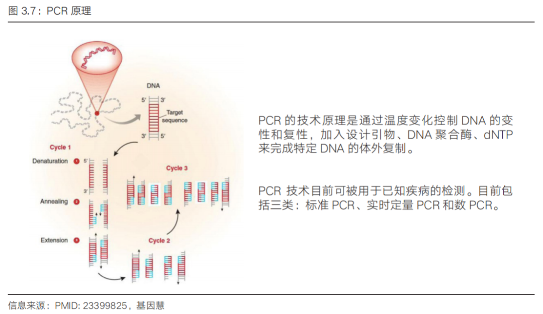 荧光定量PCR(qPCR)及数字PCR(dPCR)PCR(Polymerase Chain Reactio,聚合酶链式反应)是在体外模拟 DNA 复制的过程,快速扩增特定基因或 DNA 序列,又称为基因的体外扩增法。PCR 是生物芯片、测序等分子检测技术中的基础技术,也是一项独立的检测技术,对医学诊断等领域是革新式推动。■ 原理及步骤