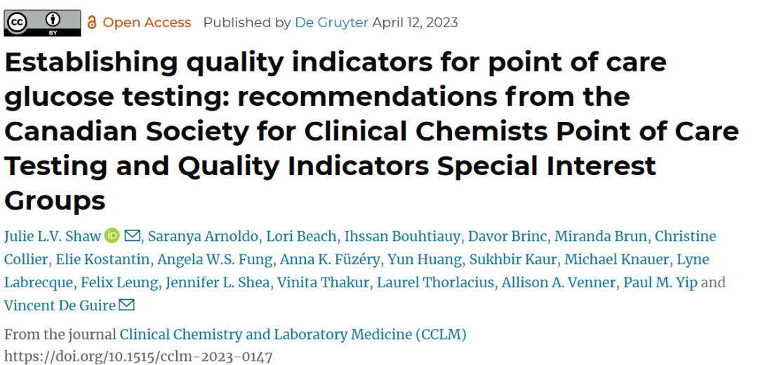 OCT血糖仪的质量指标:来自加拿大专业协会POCT工作组的建议
