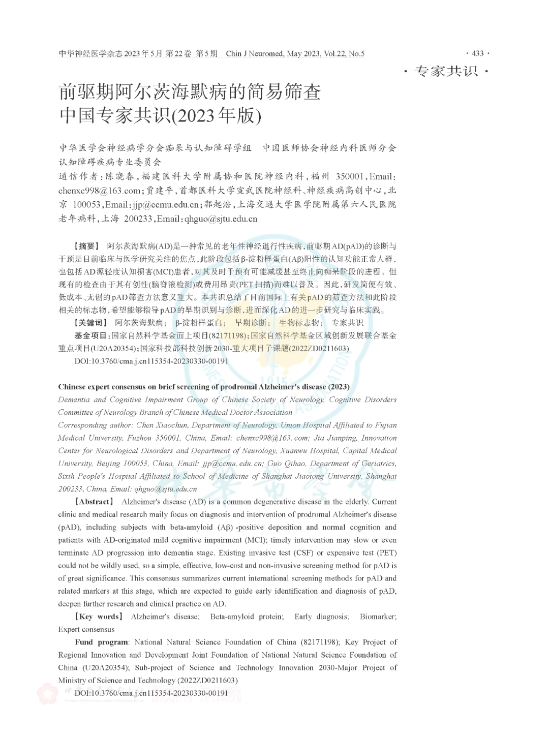 2023-6-2 11:15| 编辑: 沙糖桔| 查看: 2938| 评论: 0|来源: 中华神经医学杂志