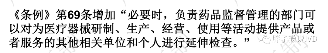 评价指南里明确写到:  指南里只写了这类物资,其实从不正式渠道知悉,国家监管机构对以下物资或者服务提供方也有意加强进行延伸考察,如灭菌、制水和委托检验的供应商。以前这块的工作就是在法规里列示,但是没有像药品行业执行那么严格,但是也对一些大型的企业做了调研,现在延申检查真的要来了。 首先有的地方的网友会说:“你北京发征求意见,关我外地什么事?”好,我问你,一个大的供应商X,供应北京AB两个客户同时供应外地CD......几百个客户。某天北京客户的延申检查发现企业X存在重大风险,产品有重大缺陷,要求X停产,那我问你外地企业能独善其身么? 第二点,北京局听取意见,是不是离正式实施还有一段时间。我觉得不会太长,或者说国家局早有准备。早在2015年我去南方某原料公司考察期间,对方就刚刚送走药监局系统领导,进行地原料企业考察调研。也就是说,国家为推行这个政策,至少将这件事提前准备了七八年。因此,我认为这个意见会很快实施。第三点:对行业有什么影响。我只能说,影响大了去了。别的行业我不敢说,IVD行业原辅料市场如果都被延伸检查,行业整体的危机感就上来了。因为很多IVD企业尤其是原料企业,很多都是只有一两间实验室,整体实验条件非常简陋。另外,很多原辅料企业一直认为其本身不属于医疗器械行业,因此没有严格按照正规的流程进行管理,因此就是在流程上还是有很多不足的,比如生产流程质检流程等。第三,人员问题。最简单的生产和质检人员分开有些企业都是没有做到的,都是一个人从头做到尾。至于危险品管理等,很多企业都不是很正规。总之,很多方面很多供应商不是这里就是那里没有做到位。以上如何改进呢?可能就需要正规的实验室硬件及其管理;需要生产过程和检验过程的捋顺及记录;需要管理系统的完善;需要人员的配置等。那么就会增加有些企业的成本,尤其是小企业,解决的办法是什么呢?1、改扩建实验室,真金白银投入,但是很多企业真的没这份实力啊;2、挂靠实验室或者在平台进行运作,包括硬件甚至是人员;全国那么多家医疗器械企业,要是都实行延伸检查,北京为例:大约有1200家生产企业,除去一类产品企业和外企,二三类产品生产企业就按照800家计算,每家有20个核心供应商计算,那么需要延伸检查的企业就要有16000家。按照现在药监部门的人员配置,恐怕很难完成任务。那就需要招聘新的工作人员,还有一条就是选择重点企业进行检查。那么,哪些企业可能是检查重点呢?很多家IVD生产企业共有的大的业界供应商,比如国内的菲鹏、诺唯赞等,是很多家医疗器械企业的供应商,说点实在的,我检查一次好多家都完成了任务,我为什么不查?这是一类监督面广的供应商。 法规、指南、各种培训都已经点名的行业或者厂家:动物源性产品、制水系统提供及服务商(在制水系统评价指南里,明确指出这类供应商属于合格供应商范畴管理。)、灭菌服务、及委托检验的厂家,都可能是下一步检查的重点。我分析,这几条受重视程度比较低,但是国家局在检查过程中发现其实情况也不容乐观,因此干脆加强监管。 第三种:有因检查。顾名思义,就是出了问题之后的检查。这类检查可能不管你企业大小,不管涉及到什么问题,只要到现场,肯定按照最严的标准执行。 第四种,迅速崛起,单品占比较大的产品。可能检查老师想从典型抓起,因此对这类产品检查比较关注哦。 啰里啰唆,这就是我看到这个征求意见稿时候的想法。延伸检查肯定对医疗器械上游企业要求更严格了。但是最基本的几点生产企业应该记住:生产质检人员配置一定到位,试验记录一定妥善保存;该在洁净区做的产品一定在洁净区做,不要在所谓假的洁净区做。妥善处理好危险品采购、库房、研发、生产部门的合规工作......总之,这件事对于医疗器械行业都是一种冲击,希望借此提高医疗器械行业上游的水平吧!参考链接:市药监局发布《北京市医疗器械注册质量管理体系核查延伸检查指导原则(试行)》 (beijing.gov.cn)