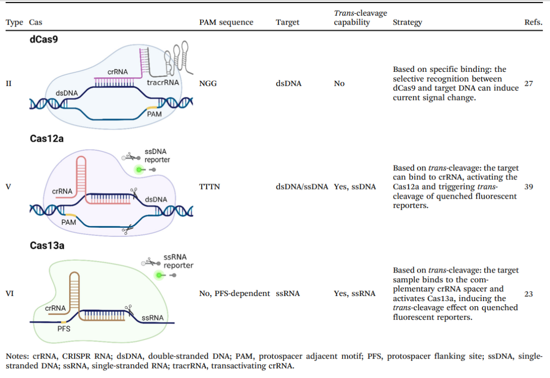 表1. 基于不同Cas蛋白的CRISPR/Cas检测系统的不同特征