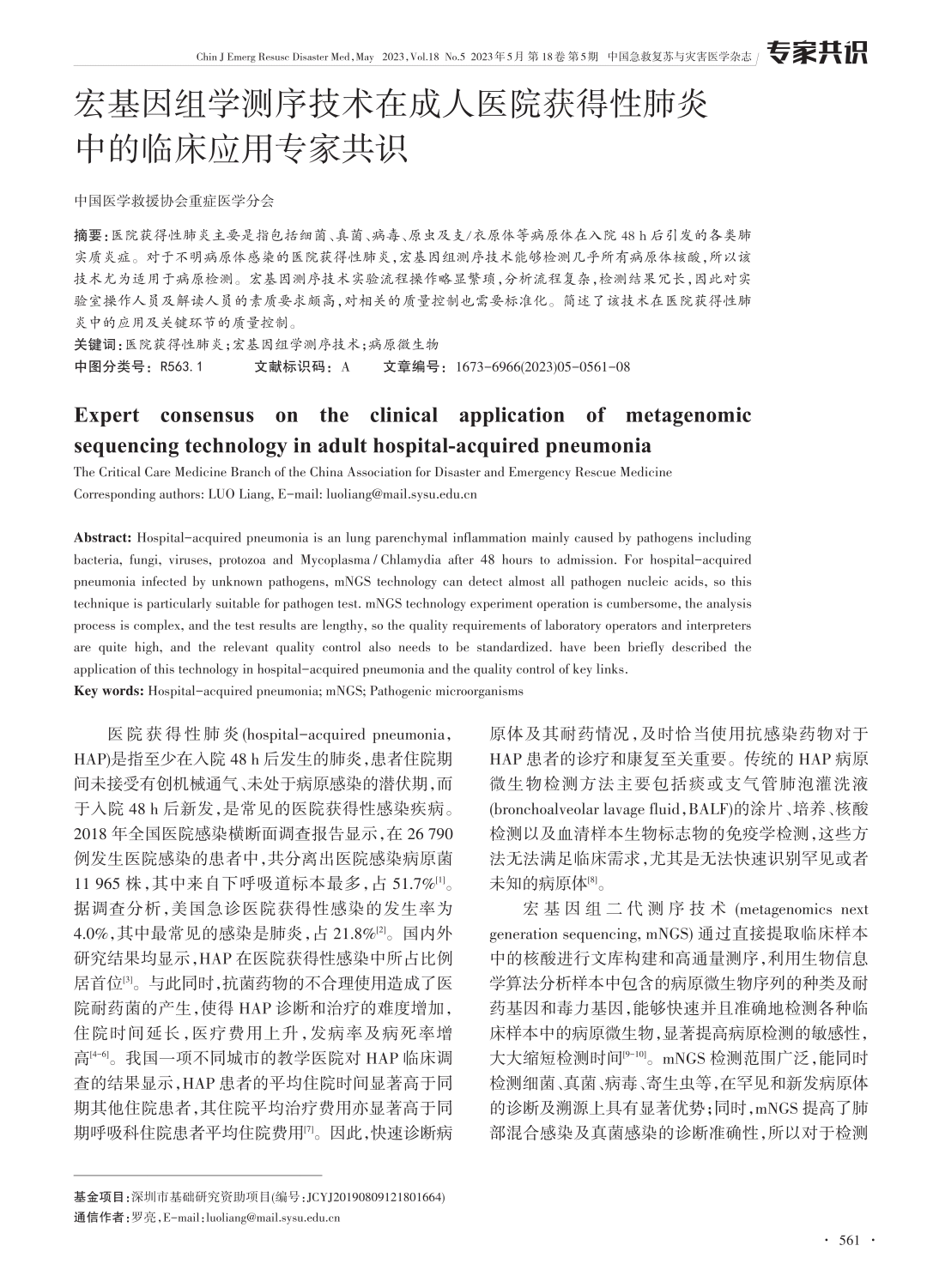 医院获得性肺炎(hospital-acquired pneumonia,HAP)是指至少在入院48h后发生的肺炎,患者住院期间未接受有创机械通气、未处于病原感染的潜伏期,而于入院48h后新发,是常见的医院获得性感染疾病。 快速诊断病原体及其耐药情况,及时恰当使用抗感染药物对于HAP患者的诊疗和康复至关重要。 而宏基因组二代测序技术(metagenomics next generation sequencing, mNGS) 通过直接提取临床样本中的核酸进行文库构建和高通量测序,利用生物信息学算法分析样本中包含的病原微生物序列的种类及耐药基因和毒力基因,能够快速并且准确地检测各种临床样本中的病原微生物,显著提高病原检测的敏感性,大大缩短检测时间。 近期,《宏基因组学测序技术在成人医院获得性肺炎中的临床应用专家共识》发布,旨在促进和规范mNGS在医院HAP诊疗中的合理应用,以下为共识意见汇总。 检测流程 建议HAP患者开展mNGS检测时,最好采集支气管肺泡灌洗液或者气道抽吸物。 建议HAP患者如存在免疫功能低下、基础疾病严重或病情危重时,且在经济允许的情况下,进行微生物培养送检的同时开展mNGS检测。 在流感病毒、冠状病毒等RNA病毒流行期间,建议HAP患者开展宏基因组检测时,首选DNA和RNA检测项目。 建议HAP患者开展mNGS检测时,要求相关实验室测序数据量至少保证10M以上。 建议HAP患者开展mNGS检测时,临床检测报告中要体现内参和对照品的检测合格性。 建议HAP患者开展mNGS检测时,检测结果要结合基础疾病史、临床其他检测结果综合考虑。 mNGS报告解读 建议HAP患者开展mNGS检测时,如检测到多种细菌时,需要考虑混合感染,同时结合临床表现综合考虑主要感染源。 建议HAP患者开展mNGS检测时,如检测到毒力基因,需要重点考虑高毒力肺炎克雷伯菌,如检测到耐药基因,避免使用耐药基因对应的抗生素,但可以通过药敏试验对耐药基因进行验证。 建议HAP患者开展mNGS检测时,如患者为严重的粒细胞减少或严重的细胞免疫缺陷继发HAP时,除重点关注一般细菌外,真菌、病毒和胞内菌等机会性感染也需重点关注。 建议HAP患者开展mNGS检测时,如检测到嗜肺军团菌,需要考虑是否存在院内供水污染等情况。 建议HAP患者开展mNGS检测时,如检测到支原体和衣原体,需要考虑是否存在院内污染。 建议HAP患者开展mNGS检测时,如检测到常见的口腔定植菌,需要考虑是否存在机械通气和误吸等情况。 建议HAP患者开展mNGS检测时,如患者有持续性严重的免疫缺陷症如艾滋病、中性粒细胞减少症等,检测到真菌且针对用药无效时,需要结合流行病学情况等考虑真菌耐药的可能。 建议HAP患者开展mNGS检测时,如检测到常见的呼吸道相关病毒时,结合该病毒流行病学情况,同时关注患者是否存在流行病学接触史,参考血清IgM抗体和IgG抗体的情况综合考虑。 建议HAP患者开展mNGS时,如果检测结果为阴性,可以针对临床可疑的微生物进行PCR验证,同时阴性结果对于排除感染具有较好的阴性预测意义,但需要结合其他检测结果综合考虑。 参考文献: 罗亮,陈仲清,陈尔真等.宏基因组学测序技术在成人医院获得性肺炎中的临床应用专家共识[J].中国急救复苏与灾害医学杂志,2023,18(05):561-568. 文章排版:晶泰医学 信息来源:IVD从业者网 |