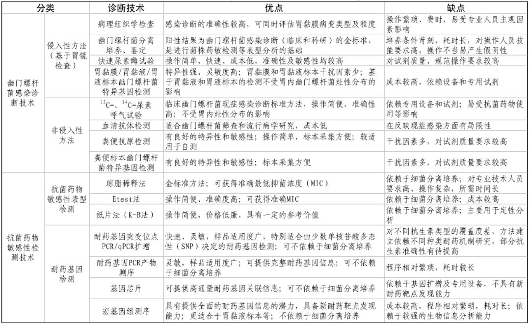 来源:中国疾病预防控制中心传染病预防控制所 由中国继续医学教育网编辑整理 2023年6月3日,国内首部《中国幽门螺杆菌感染防控》白皮书(以下简称“白皮书”)正式在京发布。白皮书由中国初级卫生保健基金会与中国疾病预防控制中心传染病预防控制所共同发起,是国内第一部具有中国特色的幽门螺杆菌(HP)感染诊疗防控手册。 白皮书提出了幽门螺杆菌感染诊断和治疗方案,并提出应对的防控策略与建议,旨在提高广大医务人员和民众对幽门螺杆菌感染的正确认识和防范意识,推动相关疾病防治工作。 幽门螺杆菌感染 幽门螺杆菌感染可引起一系列疾病,如胃炎、消化性溃疡、胃黏膜相关淋巴样组织(MALT)淋巴瘤和胃癌等。全球人群约半数为幽门螺杆菌现症感染者。根除幽门螺杆菌感染是胃癌的一级预防(病因预防)措施。 幽门螺杆菌感染相关疾病 幽门螺杆菌感染一般具有慢性、持续性特征,并通过与宿主因素、环境因素交互作用引发相关疾病。幽门螺杆菌感染相关疾病中最常见的包括胃炎、消化不良、消化性溃疡、胃MALT淋巴瘤、胃癌,以及免疫性血小板减少性紫癜、不明原因的缺铁性贫血等。 幽门螺杆菌感染的诊断和治疗 随着中国医疗卫生资源不断丰富,幽门螺杆菌感染检测已普遍纳入健康体检。感染人群的主动就医意识显著增强,医疗卫生系统合理处置幽门螺杆菌感染的能力明显改善。 诊断技术 幽门螺杆菌感染诊断和抗菌药物敏感性检测常用技术如下图: 健康体检 健康体检是幽门螺杆菌感染诊断的重要平台,幽门螺杆菌感染检测已成为国内多数体检机构的常规体检项目或体检套餐内容,主要采用13C-或14C-尿素呼气试验、血清学检测,其中尿素呼气试验可用于现症感染诊断,血清学检测阳性者可结合患者具体情况判断是否为现症感染。 在当前主要侧重感染诊断的体检项目基础上,逐步纳入对幽门螺杆菌感染菌株耐药检测内容,如基于粪便的幽门螺杆菌耐药基因检测等,有助于指导后续制定根除治疗方案。 临床治疗方案 经验治疗方案是目前幽门螺杆菌根除治疗中最常用的临床治疗方案,常用的方案是四联方案[如含钦剂四联方案,包括2种抗生素(抗菌药物)、一种抑酸剂和一种钦剂,疗程10-14天]。 根除治疗方案中常用抗生素包括阿莫西林、克拉霉素、左氧氟沙星、甲硝唑等。根除方案中可能涉及的非抗生素药物包括抑酸剂、胃黏膜保护剂、中医药、微生态制剂等。 幽门螺杆菌感染防控策略 防控策略应在坚持预防为主、防治结合的原则下,以基层为重点,把幽门螺杆菌防治融入当地政策。 预防为主策略 预防是最经济最有效的健康策略。预防幽门螺杆菌感染也是胃癌防控最有效的策略,通过有效管理传染源、阻断传播途径和保护易感人群,有效减少幽门螺杆菌的传播风险。 主动监测策略 幽门螺杆菌感染及相关因素的主动监测是准确评估疾病负担、制定防控策略的前提和基础。主动监测主要涵盖幽门螺杆菌感染率及耐药变化趋势监测、以及感染所致相关疾病信息。针对广大农村地区,应将幽门螺杆菌检测纳入健康体检,将相关监测内容纳入疾病监测网络。 合理诊疗策略 幽门螺杆菌诊疗策略总体应符合中国国情,合理的诊疗策略应综合考虑感染人群特征、诊断与治疗间的关联性、诊疗措施的可及性、诊疗方法的有效性,主要应考虑以下几方面内容: 1.“检测-治疗"策略 幽门螺杆菌感染的检测和治疗策略是采用非侵入性方法检测幽门螺杆菌、对阳性感染者给予根除治疗的策略。鉴于所有幽门螺杆菌感染者都是患者,在无抗衡因素的情况下均应接受根除治疗。 2.有效根除策略 重视每位感染者,对每次根除治疗方案要科学制定并努力达到成功根除效果。幽门螺杆菌根除治疗不可避免会带来抗生素耐药、药物不良反应及根除治疗失败的可能;特别是在接受多次根除治疗的患者,后续根除治疗愈发困难,每次制定根除治疗方案时,更应充分结合患者的感染史、用药史等信息制定预期高根除率的治疗方案。 (1)合理选择药物及其组合 幽门螺杆菌根除治疗方案中的药物选择应遵循以下原则。 • 安全有效原则: 选择的药物应具备相对药效明显、副作用低和耐药率低的特征。目前克拉霉素、阿莫西林、左氧氟沙星等药物为选择最多的一线治疗药物;四环素和味喃唑酮常用于根除治疗失败的补救疗法。 • 合理组合原则: 为应对抗生素耐药和提升根除效果,有必要在幽门螺杆菌根除治疗中进行药物合理组合。 • 符合卫生经济学及药物可及性原则: 在幽门螺杆菌根除药物选择时,应考虑当地相关药物的供应条件、药物可及性、价位承受度等因素。 (2)科学制定根除治疗方案 根据是否具备个体化治疗条件区别对待,找到适合患者需求、简便易行、预期疗效显著、疗程合理的方案,这是制定根除治疗方案的基本要求。 对于具备个体化治疗条件的人群和地区,应优先推荐结合患者感染菌株抗生素敏感性背景,选择敏感抗生素组合的方案,通常2种敏感抗生素与抑酸剂组成的三联方案可获得满意的根除效果。 合并其他感染性疾病时,综合具体情况考虑用药。根除治疗过程中可能出现肠道菌群紊乱导至腹泻的问题,可服用微生态制剂预防和纠正菌群失调。 (3)根除治疗过程中的有效医疗协助 除患者形成自身的服药习惯外,有效建立和维持患者与医务人员的信息