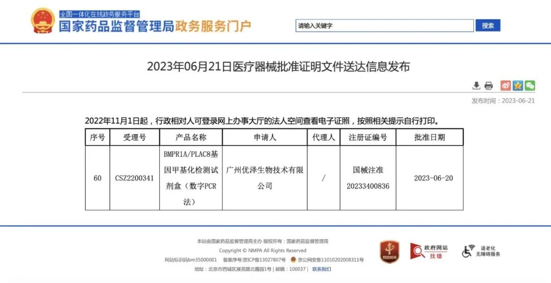 数字PCR在国内已发展了10余年,国产数字PCR也是并驾齐驱。数字PCR技术,因其具有高灵敏度、绝对定量、高稳定性和较高的抗干扰能力已经被体外诊断行业、科研领域、环境监测、食品安全和生物制药等广泛认可。 然而,分子诊断技术应用到临床的关键点是,该技术是否获得临床认可的III类医疗器械注册证,数字PCR作为新兴技术已经广泛应用于科研、环境监测、食品安全和生物制药等领域,在临床医疗领域尚未广泛使用,其主要原因是数字PCR技术尚未获得较多的III类医疗器械注册证。 NMPA官网查询到,截至2023年6月21日之前,只有南京科维思生物科技股份有限公司 Her2基因扩增检测试剂盒(数字PCR法)获得III类医疗器械注册证。
