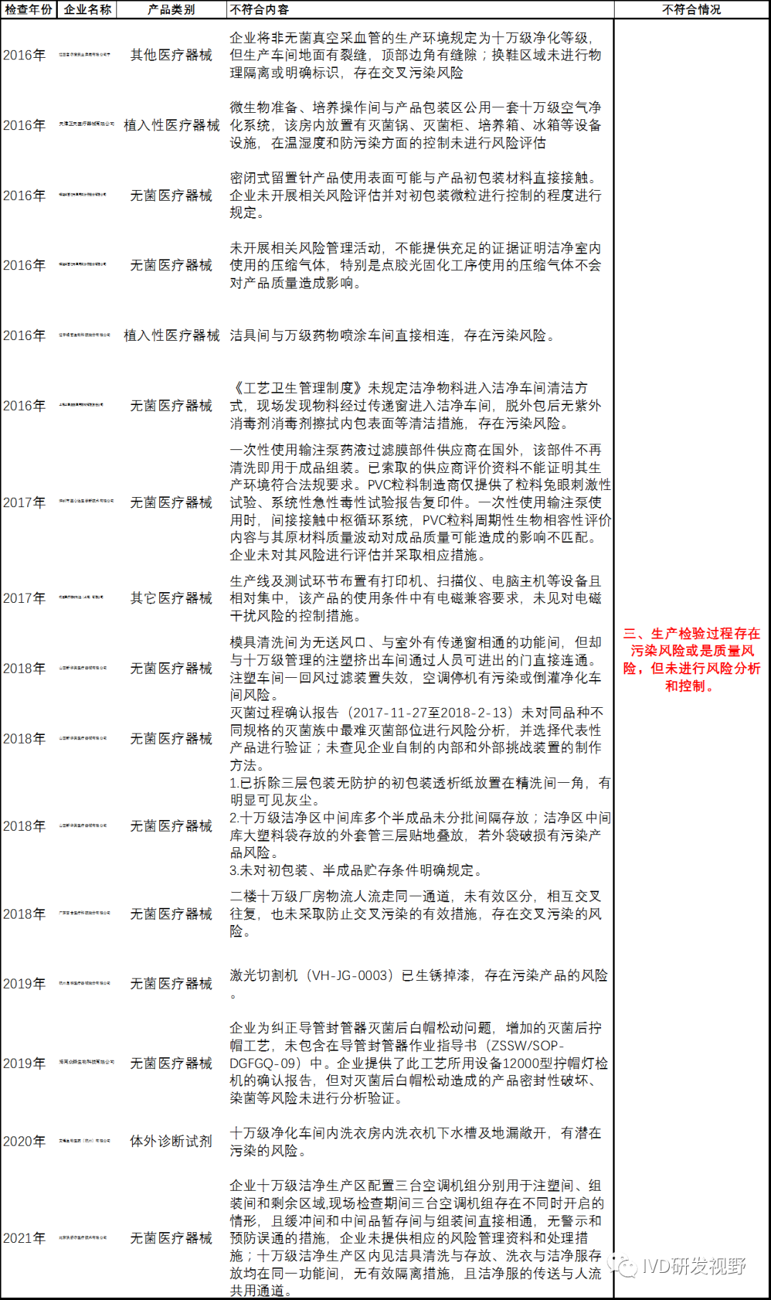 三、生产检验过程存在污染风险或是质量风险,但未进行风险分析和控制。
