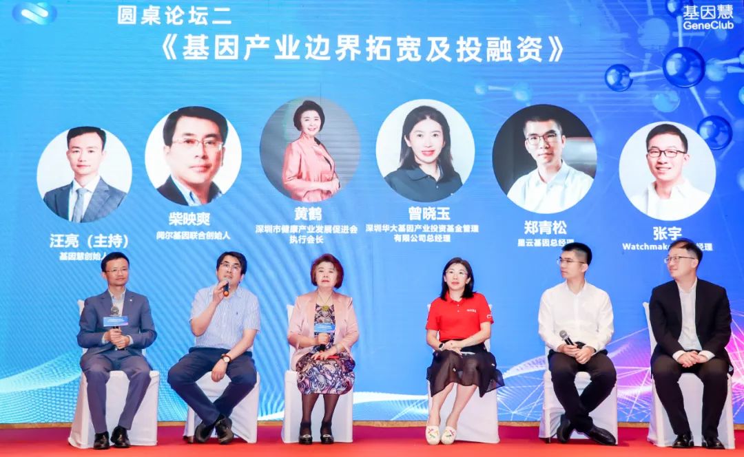 第二场产业圆桌围绕“基因产业边界拓宽及投融资”,由基因慧创始人汪亮主持,阅尔基因联合创始人柴映爽、深圳市健康产业发展促进会执行会长黄鹤、深圳华大基因产业投资基金管理有限公司总经理曾晓玉、星云基因总经理郑青松、Watchmaker中国经理张宇等特邀嘉宾展开探讨。
