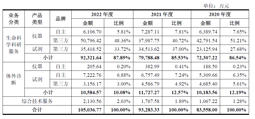 公司主营业务收入主要来自于生命科学科研服务和体外诊断两大业务板块。