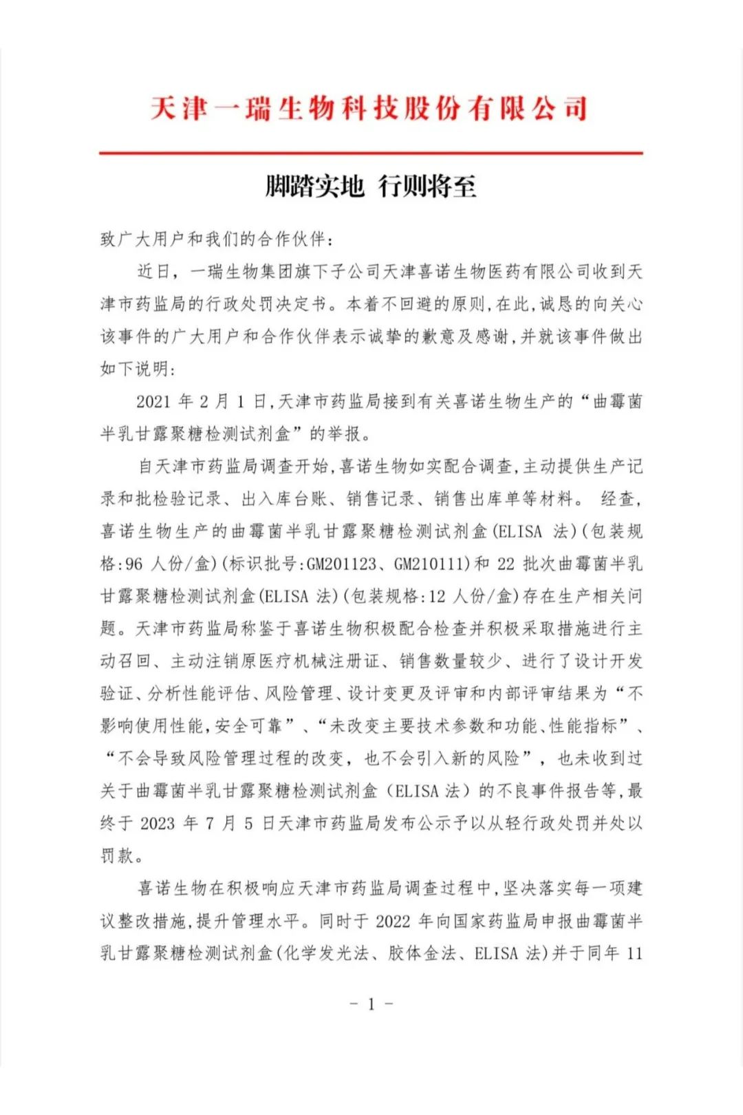 近日,天津市药品监督管理局对天津喜诺生物医药有限公司出具行政处罚决定书。针对2021年2月1日,接举报件,反映该企业所生产的“曲霉菌半乳甘露聚糖检测试剂盒”与药监部门批准的产品不一致,作出行政处罚决定。 处罚明细如下: (一)“生产、经营未取得医疗器械注册证的第二类、第三类医疗器械的”的规定,现责令当事人改正上述违法行为,并决定处罚如下: 1.没收违法所得1400元, 2.处货值金额10倍罚款768000元。 (二)“未按照经注册或者备案的产品技术要求组织生产,或者未依照本条例规定建立质量管理体系并保持有效运行,影响产品安全、有效”的规定,现责令当事人改正上述违法行为,并决定处罚如下: 1.没收违法所得314038元, 2.没收曲霉菌半乳甘露聚糖检测试剂盒(ELISA法)(包装规格:12人份/盒)337盒 3.处货值金额5倍罚款1699690元。 合计处罚金额270多万元。详见:一IVD企业,被罚270万元! 官网显示,天津喜诺生物医药有限公司成立于2014年,是天津一瑞生物科技股份有限公司子公司之一。一瑞生物集团旗下共设有8家全资子公司,分别是旗下设有北京金山川、天津喜诺生物、北海市兴龙生物制品、一瑞(上海)、上海川瑞、一瑞(广州)、一瑞(苏州)医药和一瑞生物(加拿大)。 今日,一瑞生物通过行业媒体发布致歉声明,不过在公司官网和官网微信上,并未看到此声明发布。 IVD体外诊断网综合自:天津药监局、一瑞官网、行业自媒体 |