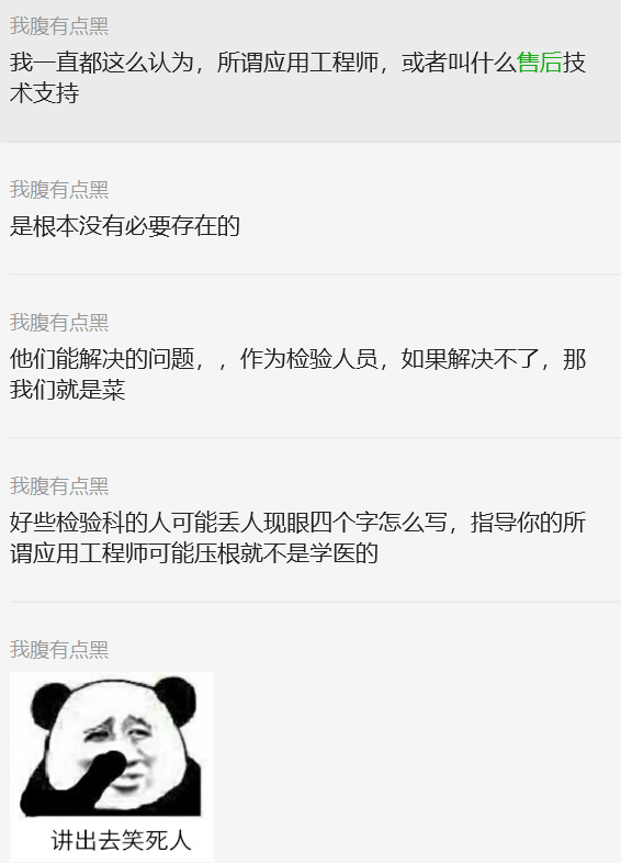 现在你信了我说的“售后技术支持”这个玩意根本不应该存在了吗?同样都是学检验的,为什么我一看就知道有问题呢?不是我多牛逼,检验也没有这么难,更何况一个胶体金产品能有多难。也就是没用心,根本就每把心思放到这上面,所以才对做的产品阳性率正常情况下大概多少都不知道。我给你们展示一下,厂家扯犊子的标准话术。