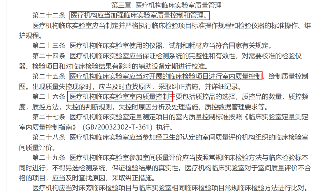 - 第十一条:医疗机构临床实验室应当建立健全并严格执行各项规章制度,严格遵守相关技术规范和标准,保证临床检验质量。