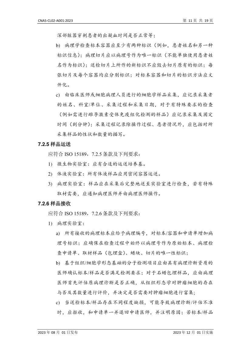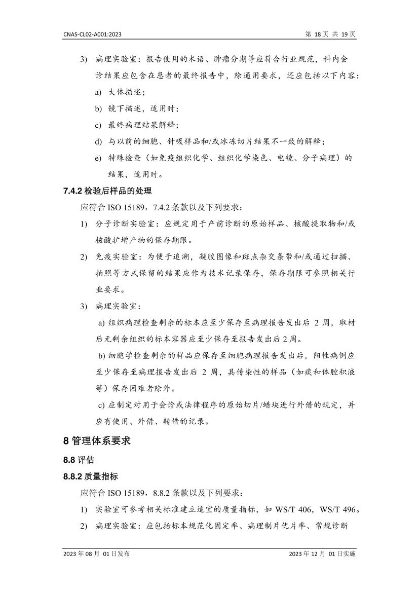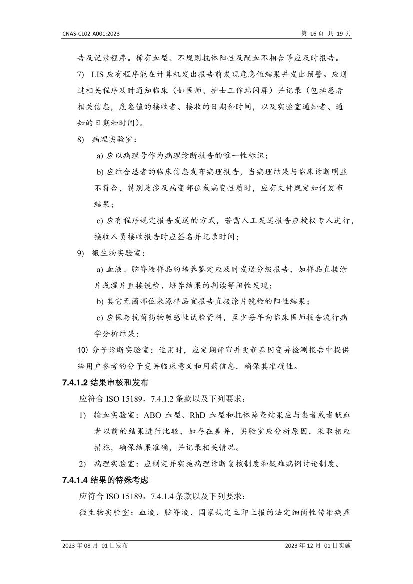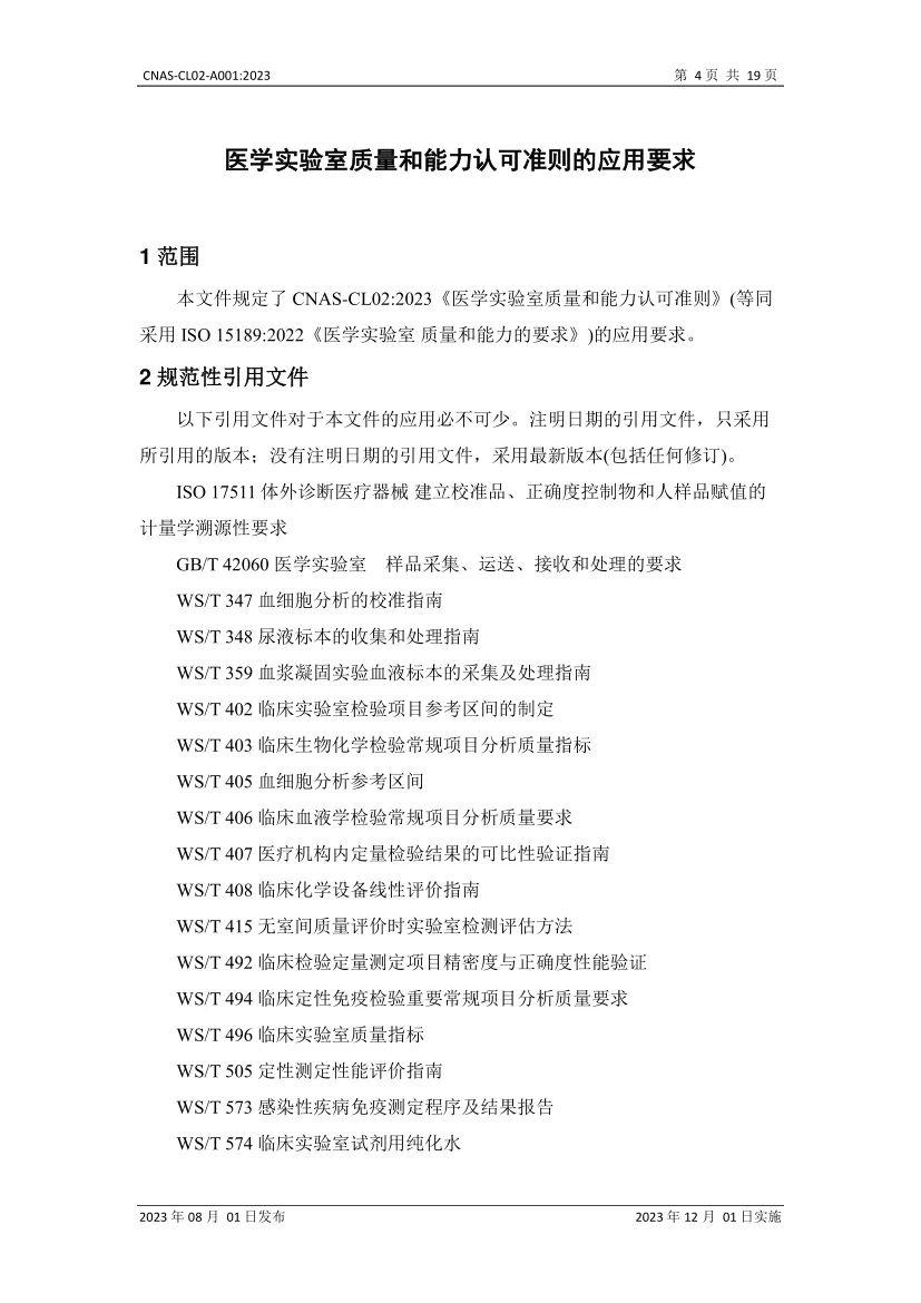 8月1日,中国合格评定国家认可委员会(CNAS)发布通知,CNAS-CL02-A001:2023《医学实验室质量和能力认可准则的应用要求》和CNAS-EL-14:2023《医学实验室认可受理要求的说明》已完成修订工作,于2023年8月1日发布,2023年12月1日实施。