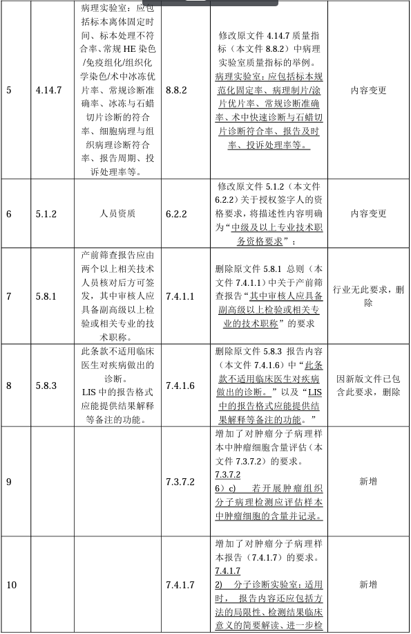 《医学实验室认可受理要求的说明》2023版与2021版修订内容差异如下: