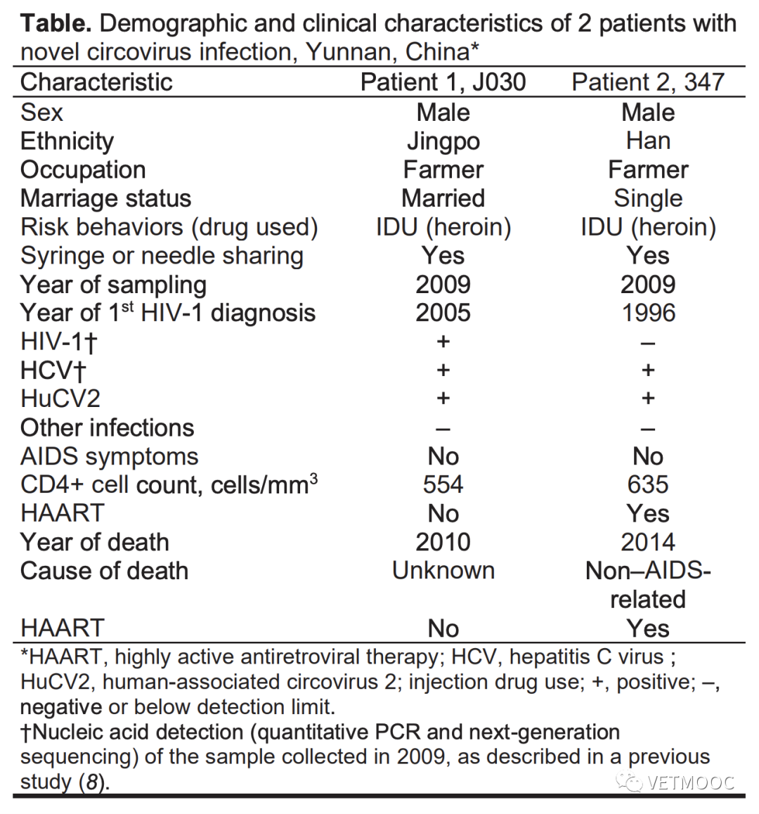其次,分别对ORF1(Rep)和ORF2(Cap)编码区进行了演化分析,绘制进化树,可以看出两个基因都是跟PCV3最近,有趣的是该病毒跟PCV3的亲源性,甚至跟PCV2和PCV1的亲源性都高于原来发现的HuCV1。该实验中同时鉴定到的两个毒株序列同源性是98.5%。同时作者也提供了2位患者的发病信息,当然这还没把办法确实与HuCV2关联。其实最后也留下很多问题,它们在人上致病性如何?健康人群中是否也有?是否是因为HIV-1的免疫抑制导至该病毒能够在体内感染增殖?最重要的一个信息就是猪上会有HuCV2吗?在PCV3阳性猪群中看到猪只活蹦乱跳的,目前来看貌似还暂时不用太担心,像媒体炒的那样(恐怖)。。。但从One Health和zoonosis的角度进行监测还是有必要的。原文链接:https://DOI: 10.3201/eid2905.221617