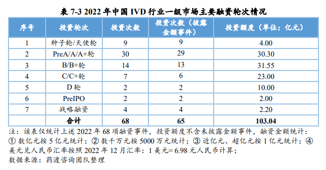 上半年,行业政策风向变动,IVD企业之间合作与竞争不断,企业原先上市计划受到冲击。截至目前,2023年上半年,5家IVD企业终止IPO进程,除相关性较强的ICL企业艾迪康外,上市IVD企业数仍旧为零。 截止2021年末当年IVD行业上市企业达到17家,2022年与2021年相比减少10家企业,2023年上半年则没有IVD企业实现上市,按照这一趋势,2023年很有可能将面临颗粒无收的局面。 一、IVD 企业一级市场融资情况 注:由于某些融资事件未披露原因,本章节 IVD 企业融资事件为代表性企业主要融资事件,非完全统计。 2022年-2023年H1中国IVD行业一级市场融资主要涉及分子诊断、免疫诊断、质谱检测、生化检测等领域。在上述 96 项投资事件中,共涉及 87 家企业。 其中,获亿元以上融资的事件共计 44 项,涉及 41 家企业,按年份统计,2022年获亿元以上融资的事件共计 34 项,2023 年 H1 获亿元以上融资的事件 10 项,明显少于 2022 年度融资金额。齐碳科技完成 7 亿元 C 轮融资,硅基仿生同年获得 2 次 5亿元及以上融资,9 家企业获得数亿元(以 5 亿元统计)融资。 2022年-2023年H1中国IVD行业各轮次融资情况如下表所示。 由上表可知,2023年H1中国IVD行业一级市场融资总额为20亿元。从融资企业所处轮次看,处于B轮之前的事件约占46%。在融资额度方面,Pre A/A/A+轮融资金额最高,为 9.60 亿元;战略融资事件多未披露金额。 二、IVD 企业二级市场融资情况 2022 年中国新上市的 IVD 企业共计 7 家,分别为仁度生物,云康集团、美因基因、英诺特、华大智造、新芝生物及康为世纪。其中,云康集团,美因基因于港交所成功上市。上述7家企业的IPO融资金额共计76.41亿人民币,其中,华大智造融资额最高,约36亿人民币。 2023年H1除艾迪康外,致善生物、联川生物、中翰盛泰生物、雅睿生物、硕华生命科学均在2023年H1阶段上市失败。此外,还有一大批 IVD 企业还在审核中,如全式金、世和基因、凯实生物、达科为、沃文特、英科新创等。 三、国内外IVD巨头上半年业绩全部下滑 近日,IVD外企巨头雅培、赛默飞、丹纳赫、罗氏陆续公布上半年财报。 以上数据不难看出,这些IVD外企巨头上半年诊断业务营收均受重创。而国内IVD企业营收状况也不容乐观。截止目前,有多家大A股IVD企业发布了半年报预告,包括明德生物、达安基因、金域医学、九安医疗等。 明德生物发布2023年H1业绩预告,预计2023年1-6月业绩大幅下降,净利润同比下降96.38%至95.29%;达安基因2023年H1业绩预告显示,预计2023年上半年净利润同比下降87.2%~89.98%;金域医学发布2023年H1业绩预告,预计上半年净利润与上年同期相比下降12.93亿元到13.83亿元,同比下降78.7%到84.17%。九安医疗2023年H1业绩预告显示,预计上半年净利润较去年同期下降93.77%至95.08%;扣非净利润,较去年下降97.25%至96.34%。 对于利润下跌的原因,明德生物指出是防疫检测产品市场需求大幅下降,金域医学则是因为检验需求减少,公司医学诊断服务收入较去年下降,达安基因和九安医疗也同样将营收下跌的原因指向了市场需求减少。 四、低走之下的新变化 在二级市场融资方面,由于核酸检测业务曾经一度火热,2021 年中国新上市的IVD企业数量达到峰值,但此后便一路走低。此外,2022年全球IVD整体市场容量增速放缓。Kalorama information 数据显示,2022 年新冠检测相关市场份额降低至 25.58%,但全球 IVD 整体市场容量从2021年的 1233.68 亿美元增长至1273.80 亿美元,增速为 3.25%。 在一级市场融资方面,2022年中国 IVD 行业整体投融资力度减弱,投资总额约103 亿元(较2021年的140亿下降26%)。这一变化在2023年H1呈现的更为明显,上半年中国 IVD行业投融资约为20亿元,仅为2022年度的20%,投资市场降温明显,并且IVD赛道融资有多样化趋势,如微流控芯片、生物原料、生物组学、超低温冷藏设备等。 在超亿元的投资事件中, 2022年获亿元以上融资的事件共计34项,2023年H1获亿元以上融资的事件10项。齐碳科技完成 7 亿元 C 轮融资,硅基仿生同年获得 2 次 5 亿元及以上融资,9 家企业获得数亿元(以5亿元统计)融资。对于大额投资,投资机构更趋于谨慎。 IVD行业增长放缓,但长远来看发展依然客观。随着疫情影响消退,新冠检测相关的市场将持续缩减,但整体 IVD 市场受癌症检测、血糖检测等项目的带动仍将保持增长,预计至 2027 年将超过 1400 亿美元。此外,越南、土耳其、韩国、阿联酋、沙特阿拉伯、中国等新兴市场将持续助力全球 IVD 市场的发展。 信息来源:中国医药企业管理协会、药渡咨询、Eshare医械汇,文章内容由“MIR医学仪器与试剂”编辑整理,转载请注明来源。 |