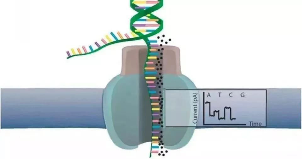 它基于物理电学,利用单链DNA分子通过纳米孔时对局部电流的改变来完成碱基序列的测定。