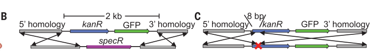 水平基因转移(HGT),即生物个体之间的遗传物质交换,在微生物中很常见。贝氏不动杆菌(Acinetobacter baylyi)是一种自然感受态细菌,在健康人体内基本上没有致病性。可以定植小鼠胃肠道,并获取未纯化的环境DNA。
