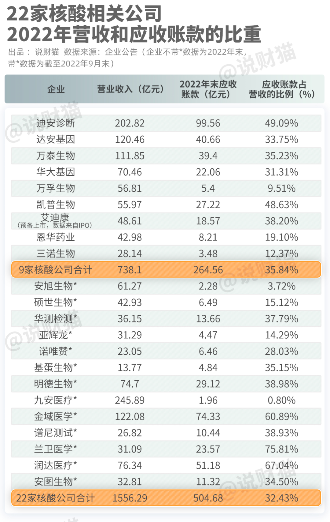 这个问题在第三方检验服务公司上尤其明显,大都是营收规模大、利润率低,应收账款高。算下来一年做了几亿份核酸检测,可能算完账还是亏本的。