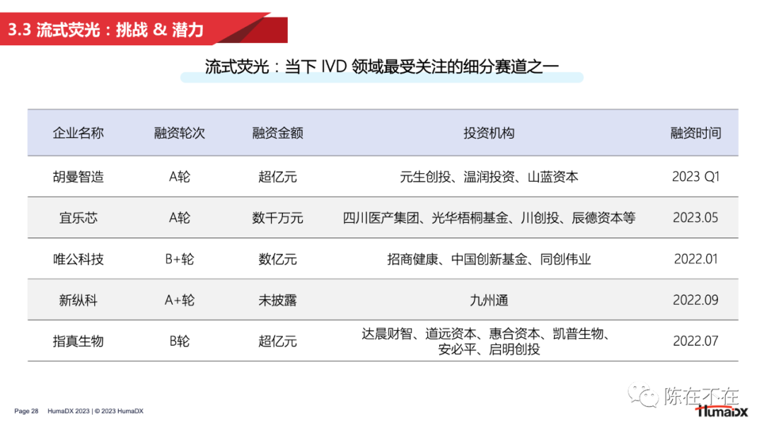 3 — 朝阳:流式荧光的中国赋能 随着技术发展,中国企业对流式荧光的关注度越来越高,也有越来越多的企业以自主研发的形式入局赛道。这一部分将从发展背景、产品现状、机遇挑战这几个方面对国产流式荧光的发展进行分析。 首先我们先回顾一下文章开头提出的问题——“为什么直到1997年,将流式细胞术和免疫检测相结合的流式荧光技术才被发明出来?” 在回顾了流式荧光的早期发展历程之后,答案其实已经呼之欲出:因为流式荧光技术的发展,离不开微球、试剂、设备、算法这一系列技术组合的共同进步。在上世纪七八十年代,微球更多用于流式细胞仪的校准,随着技术发展,微球才逐渐被用作免疫诊断中的固相载体。之后,随着BD公司和Luminex公司在编码微球技术上的不断突破,实现了几十乃至上百重的编码重数,才使得微球从仪器校准的工具演变为多重检测的核心技术。其次,随着单克隆抗体技术的出现,免疫学检测的范围越来越广,使流式荧光技术拥有了清晰的临床应用场景。此外,由于激光器和光学部件的革新,流式细胞仪逐步实现小型化、桌面化,成本也不断降低,为流式荧光的出现做出铺垫。最后,台式计算机在90年代的普及,以及随之而来的软件算法发展,也让多重检测、微球分群成为可能。 无论是流式细胞术还是流式荧光技术,中国企业相比欧美都起步较晚。2011-15年,中国的初代流式企业陆续登场,带来了第一批国产流式细胞仪;2015-16年,随着头部企业战略调整,一批优秀人才迈出自主创业的步伐,催生了第二批流式明星企业的诞生。本土企业的百花齐放推动了流式细胞术在临床的开展,也为流式荧光技术的国产化打下了坚实的基础。分析流式荧光设备的上市时间可以看到,2020年,国产半自动流式荧光设备开始出现;2022年起,全自动设备密集获批。可以说,正是由于本土流式企业在人才、技术上的积淀,才有了国产流式荧光的迅速发展。