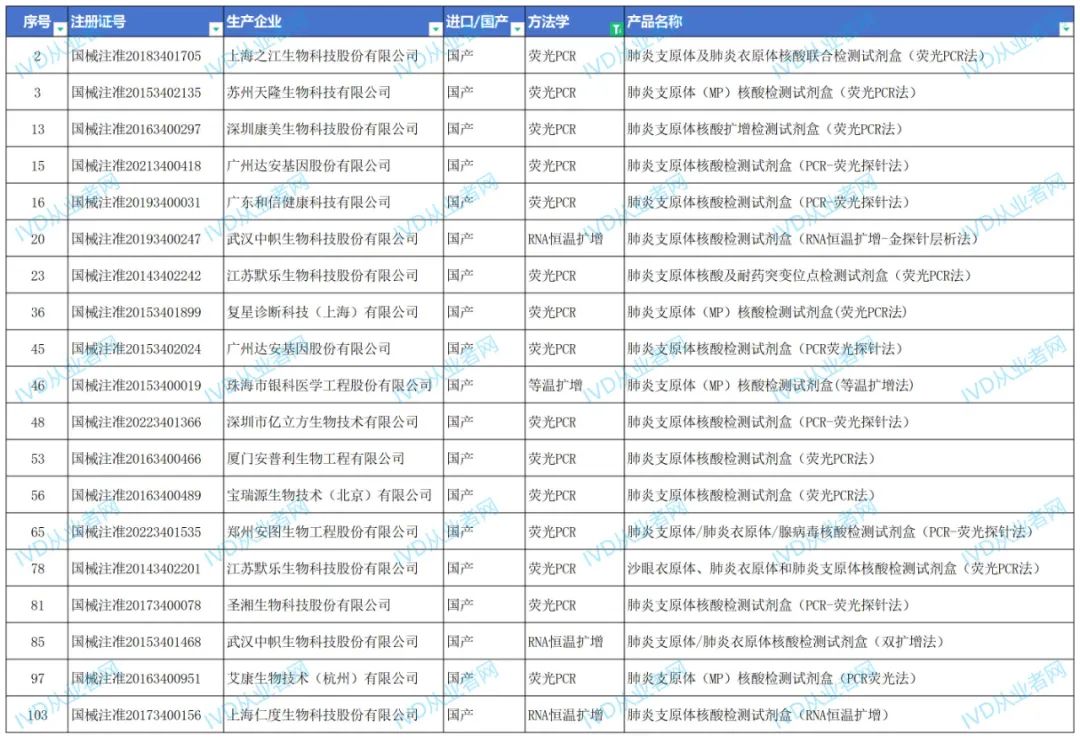 据IVD从业者网统计数据显示,目前肺炎支原体相关的检测试剂盒已达112款,其中国产试剂105款,进口试剂7款。