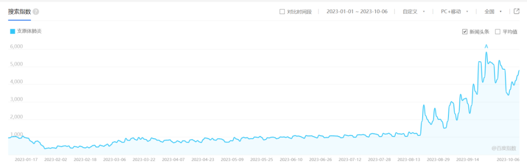 近日全国多地近期我国支原体肺炎的发病数有所上升,尤其是在广东、福建等南方地区与去年同期相比上升比较明显。据医学界消息,“10月1-5日间就诊的儿童,大多数仍然是以发热咳嗽为主要表现的肺炎支原体感染患儿。”复旦大学附属中山医院青浦分院儿科主任医师徐灵敏撰文称。卓正医疗的儿科医生孔令凯指出,今年大概率是肺炎支原体流行的大年。根据搜索指数,“支原体肺炎”的热度趋势已经维持月余。(图源:Baidu)