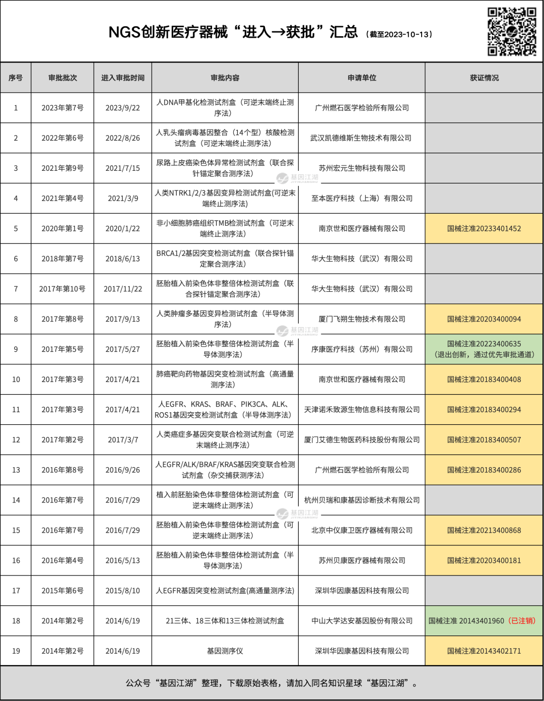 “创新路上”的成功者、失败者、行进者 看似一条捷径,但未必就是坦途。 很显然,“创新”就意味着高风险,并非所有的创新都有答案。 NGS相关创新产品的际遇,就是中国近十年创新医疗器械发展的一个缩影。 据NMPA公开数据,截至2023年10月12日,NMPA已累计批准231款创新医疗器械产品;
