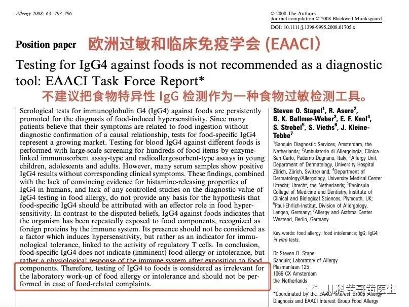 为什么医生不建议进行特异性IgG和特异性IgG4检测,主要依据基于国内外许多大型的临床研究或专家共识/指南。