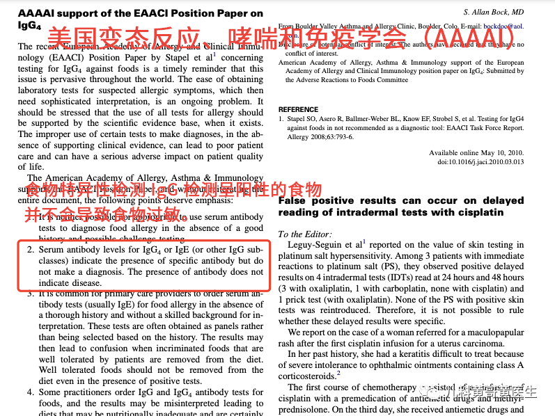 [3]S Allan,Bock.AAAAI support of the EAACI Position Paper on IgG4.[J].The Journal of allergy and clinical immunology,2010,125(6):1410.