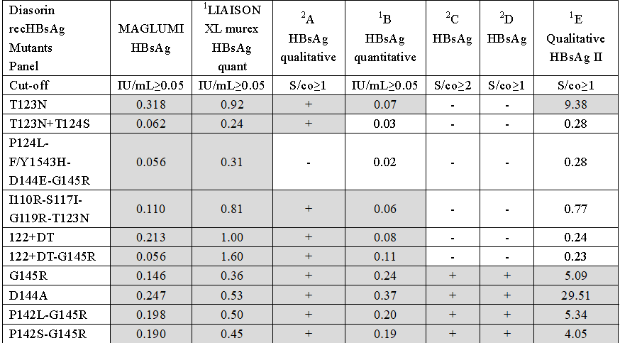新产业HBsAg试剂可检出所有LIAISON重组HBsAg突变体血清盘的突变株