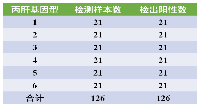 第三方性能评估,新产业可顺利检出所有126例不同基因型(HCV 1-6)样本